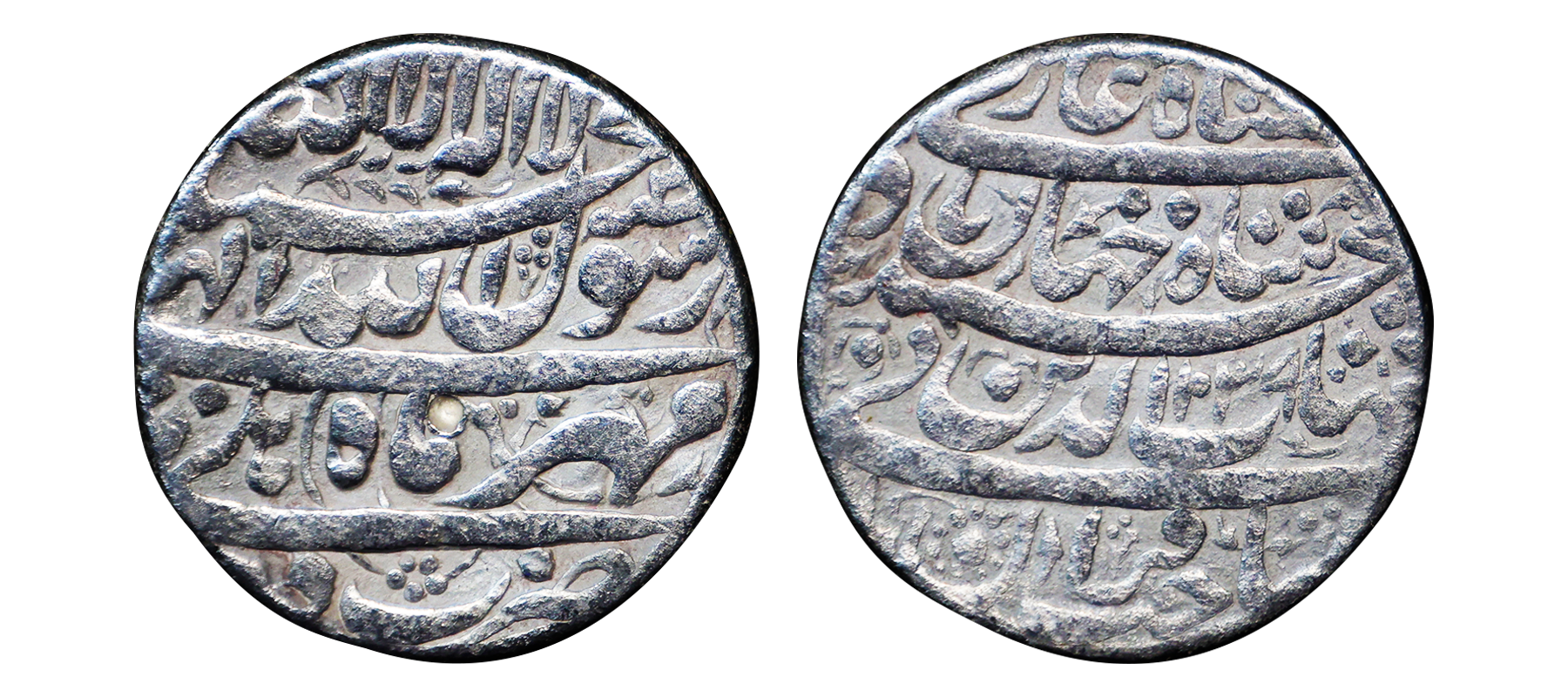 Shah Jahan (AH 1037-1068, 1628-1658 AD), Silver Rupee, 11.42 gms, Akbarabad Mint, AH 1045, RY 8, Obv. Kalima with 4 calips in quadrants, Rev. Rulers name withing dotted square and titles in quadrants along with mint name, KM # 235.3, very fine+, struck on broad flan, very scarce.
