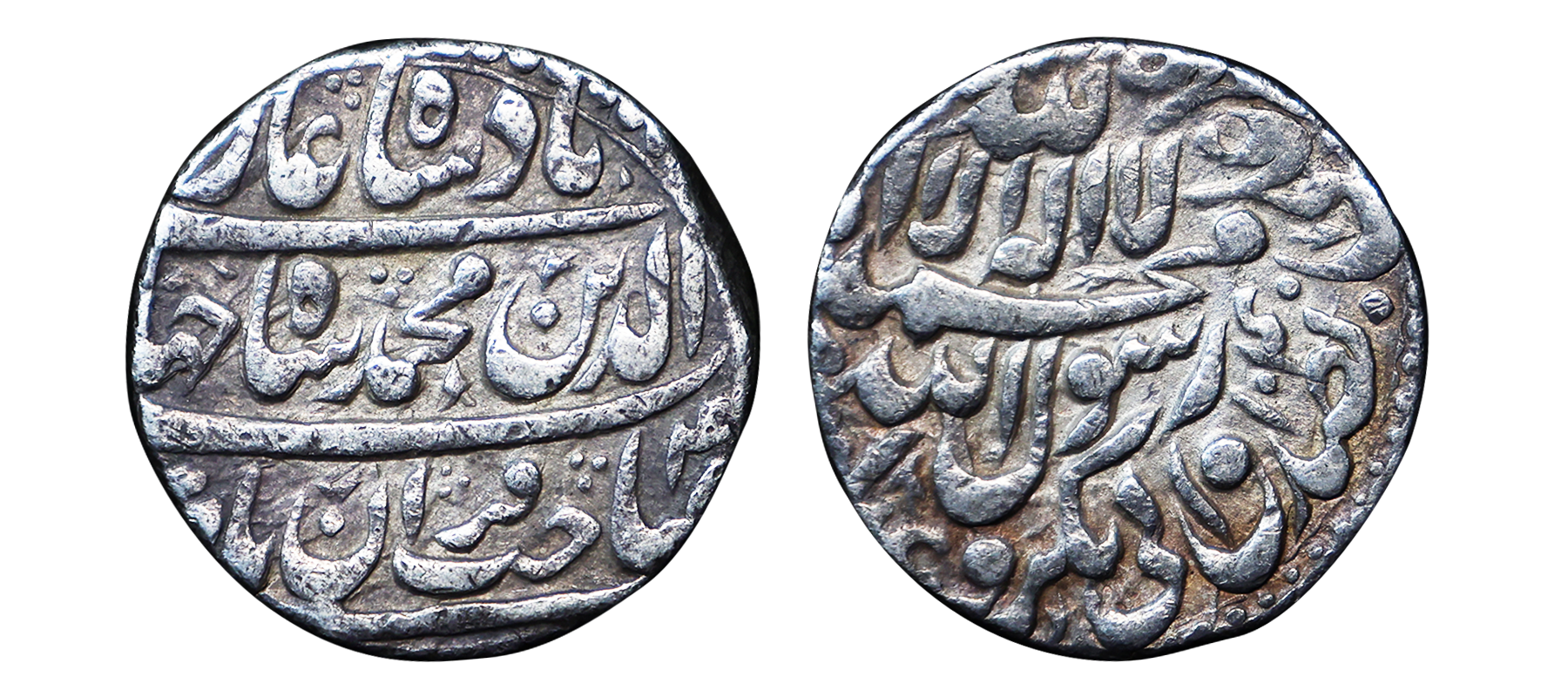 Shah Jahan (AH 1037-1068, 1628-1658 AD), Silver Rupee, 11.42 gms, Akbarabad Mint, AH 1045, RY 8, Obv. Kalima with 4 calips in quadrants, Rev. Rulers name withing dotted square and titles in quadrants along with mint name, KM # 235.3, very fine+, struck on broad flan, very scarce.
