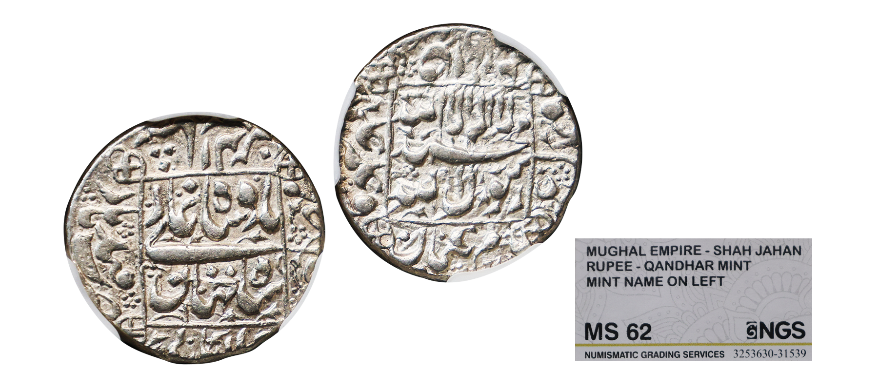 Shah Jahan (AH 1037-1068, 1628-1658 AD), Silver Rupee, 11.11 gms, Delhi Mint, AH 1039, Ilahi Month Mihir, Obv. Kalima Shahada in top two lines, Mihir Mah zarb Delhi, Rev. Sahib-e-qiran sani Shahab ud-din Muhammad Shah Jahan Badshah Ghazi, KM # 222.7, very fine, very scarce.