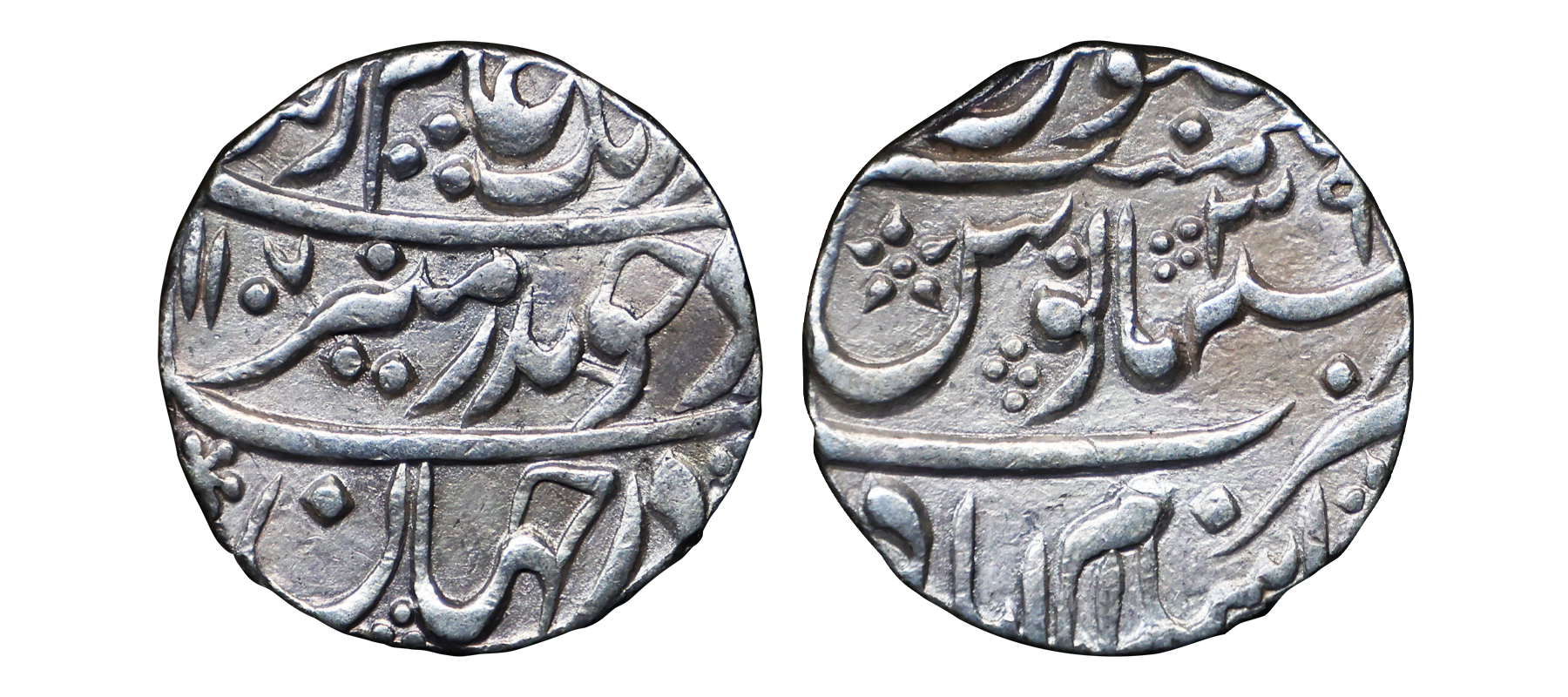Aurangzeb (AH 1068-1118, 1658-1707 AD), Silver Rupee, 11.40 gms, Islamabad(Mathura) Mint, AH 1107, RY 39, Obv. Sikka Dar jahan zad chu badr-e-munir Aurangzeb Alamgir Shah, Rev. manus mainmant sana julus zarb Islamabad, KM # 300.36, extremely fine, very scarce.