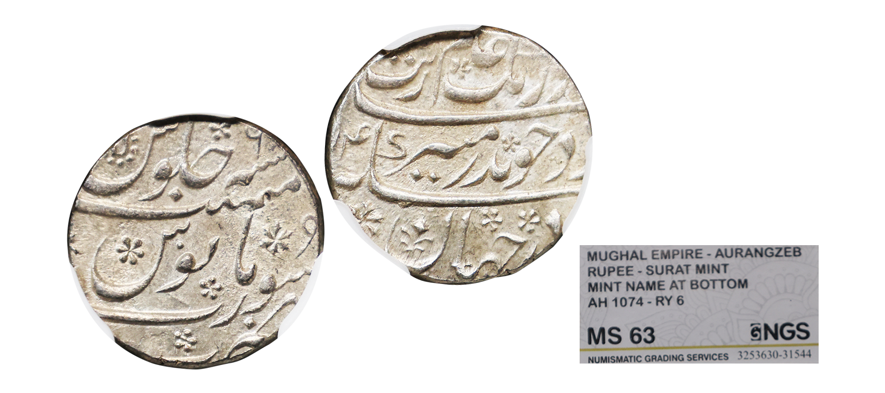 Aurangzeb (AH 1068-1118, 1658-1707 AD), Silver Rupee, 11.46 gms, Sholapur Mint, AH 1097, RY 30, Obv. Sikka Dar jahan zad chu badr-e-munir Aurangzeb Alamgir Shah, Rev. manus mainmant sana julus zarb Sholapur, KM # 300.82, extremely fine, very scarce.