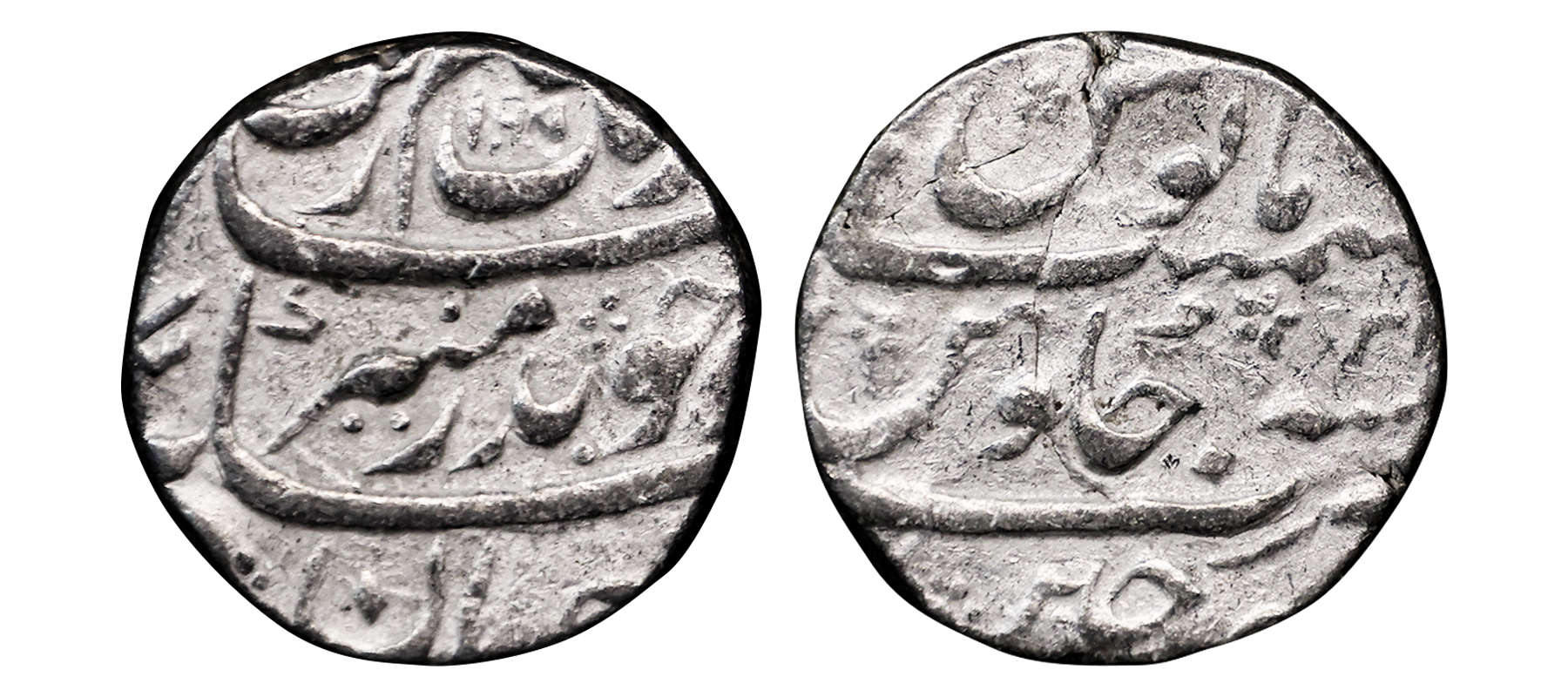 Aurangzeb (AH 1068-1118, 1658-1707 AD), Silver Rupee, 11.46 gms, Sholapur Mint, AH 1097, RY 30, Obv. Sikka Dar jahan zad chu badr-e-munir Aurangzeb Alamgir Shah, Rev. manus mainmant sana julus zarb Sholapur, KM # 300.82, extremely fine, very scarce.