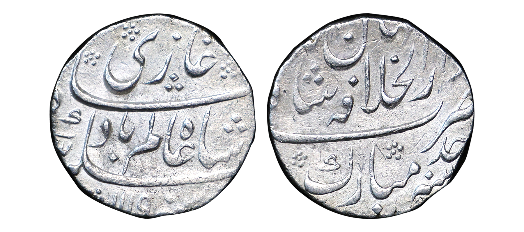 Azam Shah (AH 1118-1119, 1707 AD), Silver Rupee, 11.53 gms, Ahmadabad Mint, AH 1119, RY Ahd, Obv. Sikka zad dar jahan ba Daulat-o-Jah, Badshah-e-Mumalik Azam Shah sana 1119, Rev. sana Ahad julus-e-ashraf zarb ahmadabad, KM # 332.1, very fine, very rare.