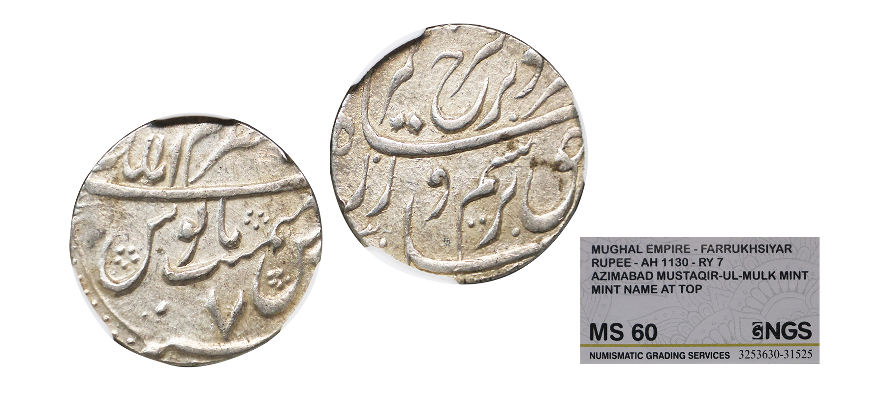 Farrukhsiyar (AH 1124-1131, 1713-1719 AD), Gold Mohur, 10.96 gms, Azimabad Mint, RY Ahd, KM # 390.7, very fine, very rare.