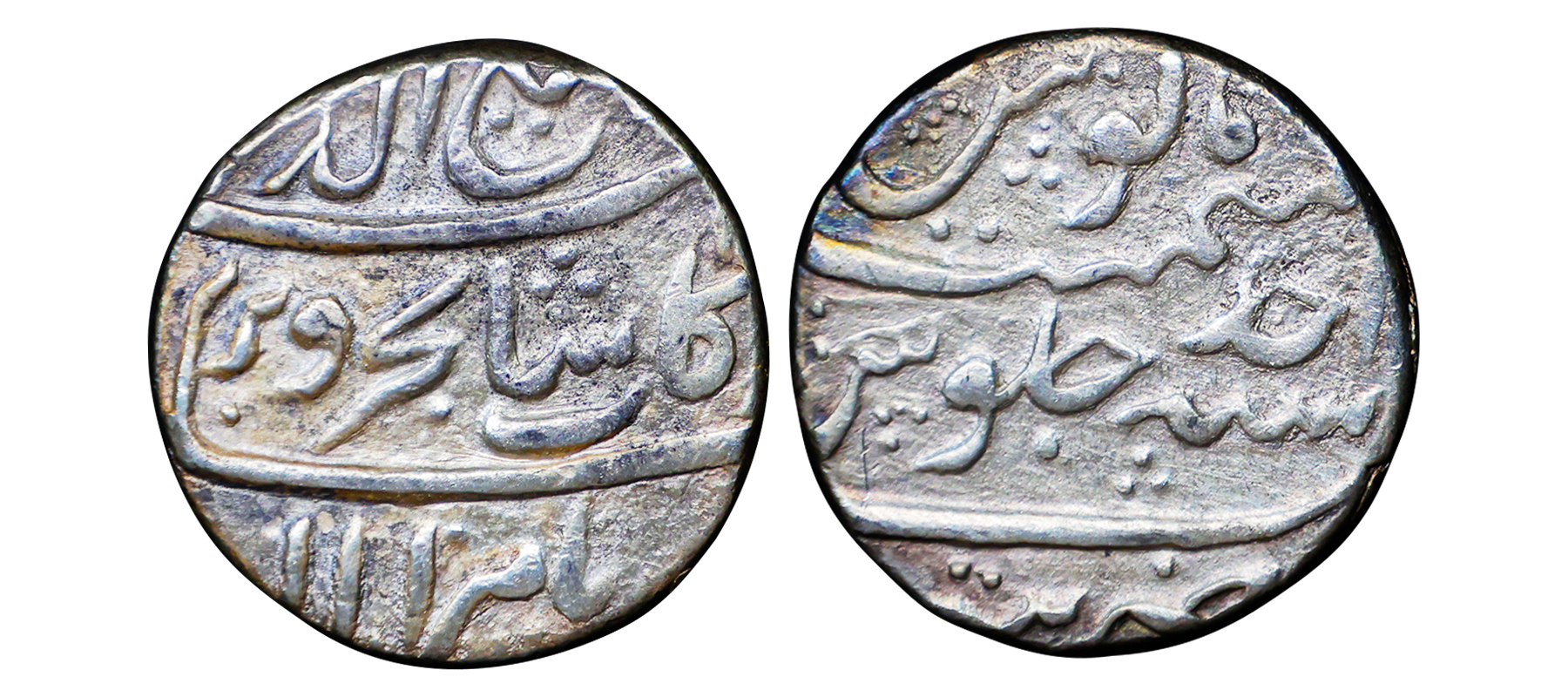 Rafi-ud-Darjat (AH 1131/1719 AD), Silver ½ Rupee, Surat Mint (by type), ‘Ba hazaran Barkat’ Couplet, Obv. sikka zad bahind bahazaraan barkaat, shahen shahe bahr-o-barr Rafi ud Darjat, Rev. manus maimanat sana julus zarb surat, KM #404.2, Graded by NGC as MS61, Top-Pop, extremely rare. Note: Fraction in Rafi-ud-Darjat are very rare, above specimen has a brilliant sharp strike with very high relief & pleasing lustre, Top-Pop(highest graded coin in NGC census).