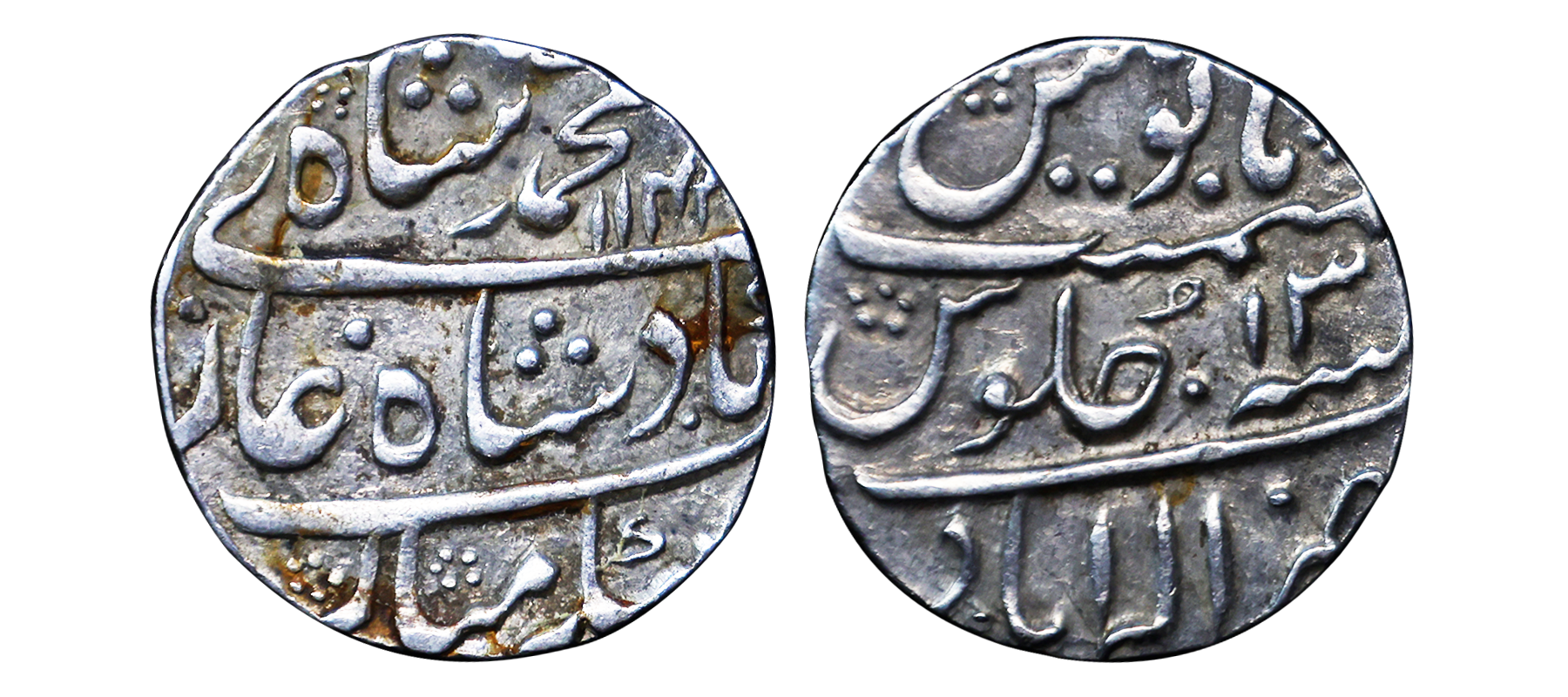 Muhammad Ibrahim (AH 1132-1133 / 1720 AD), Silver Rupee, 11.36g, Dar ul Khilafa Shahjahanabad Mint, AH 1133, Ahd RY, Ba fazle karim shahaane shah couplet. (KM # 426.1). Fine+.