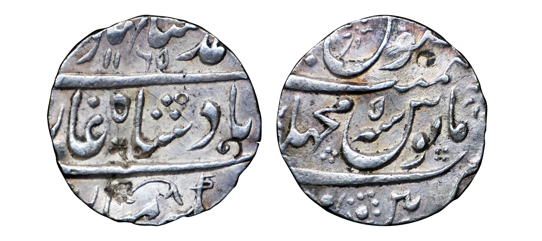 Muhammad Shah (AH 1131-1161, 1719-1748 AD), Silver Rupee, 5.71 gms, Surat Mint, RY 21, KM #433.4, very fine+, scarce.