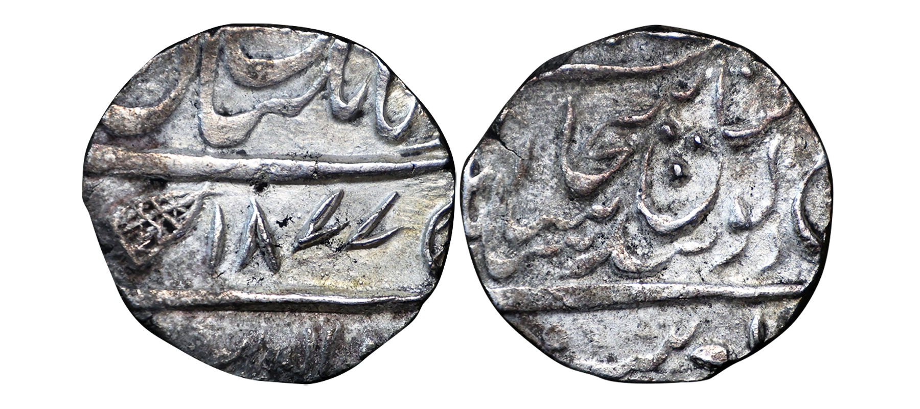 Sikh Empire, Ranjit Singh (VS 1858-1896, 1801-1839 AD), Silver Rupee, 11.40 gms, Amritsar Mint, Nanak Shahi Couplet, VS (18)91, KM # 21.2, very fine, rare.