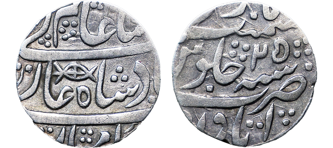 Awadh State, Safdar Jung (AH 1151-1167, 1739-1754 AD), INO Ahmad Shah Bahadur (AH 1161-1167, 1748-1754 AD), Silver Rupee, 11.32 gms, Muhammadabad Banaras Mint, AH 1166, RY 6, Unlisted in KM, Kapoor & Master Ref 2.49, very fine, very scarce.