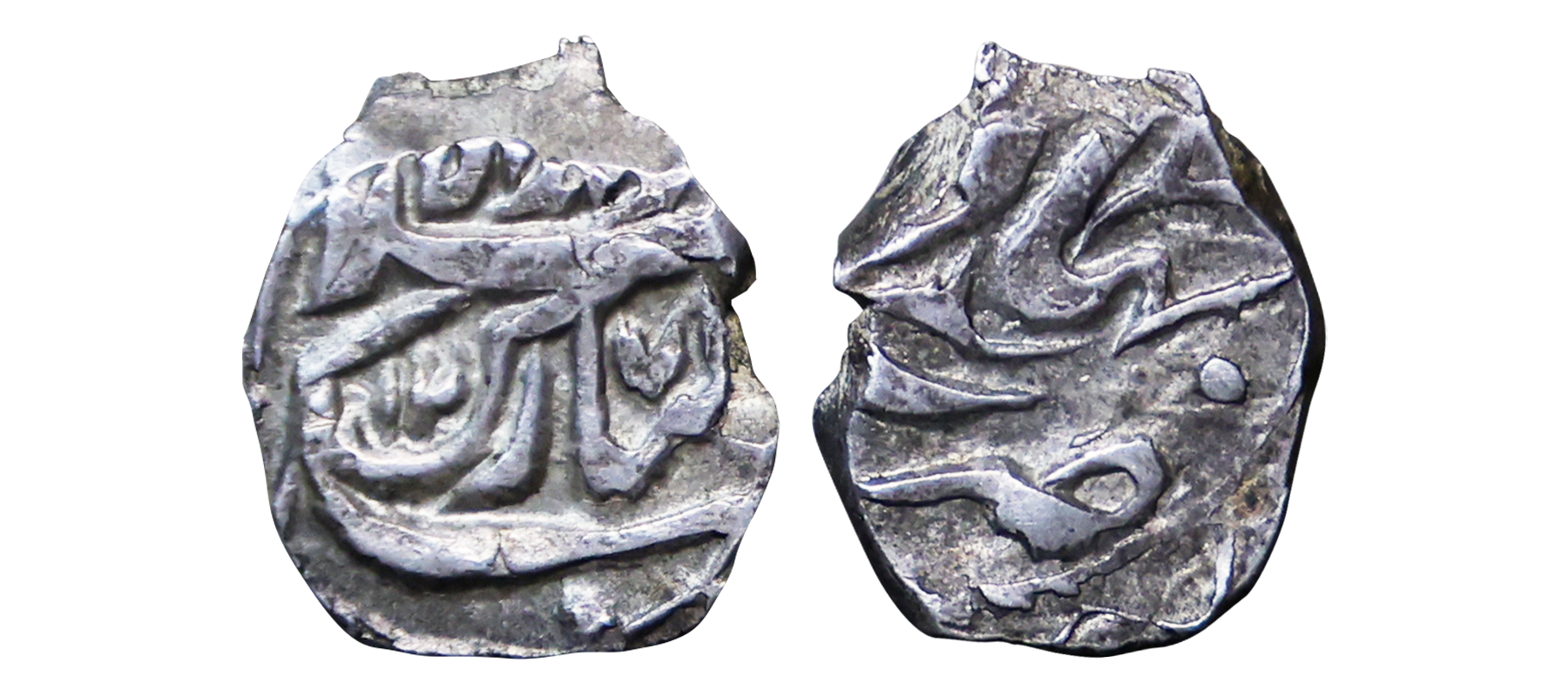 Awadh State, Wajid Ali Shah (AH 1263-1272, 1847-1856 AD), Silver Nazarana Rupee, Bait-us-Sultanat Lakhnau Mulk Awadh Akhtarnagar Mint, AH 1272, RY 10, Obv. sikka zad bar sim-o-zar az fazl wa tayid elah, zille haque Wajid Ali sultan-e-alam panah, Rev. parasol above the crown, flanked by mermaids holding a flag, with a crossed sword below, zarb Baitus Sultanat Lakhnau Mulk Awadh Akhtarnagar sana 10 julus maimenat manus, Mint Variety VI, KM # 365.3, Kapoor & Master #11.79, Graded by NGC as MS61, extremely rare.