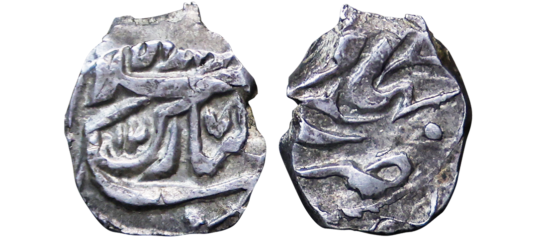 Awadh State, Wajid Ali Shah (AH 1263-1272, 1847-1856 AD), Silver Rupee, 11.08 gms, Bait-us-Sultanat Lakhnau Mulk Awadh Mint, AH 1269, RY 6, Obv. Sikka zad bar seem wa zad az fazl tayeed-i-ilah zulle Haque wajid ali sultan alam Badshah, Rev. zarb bait us-saltanat lakhnau mulk awadh akhtarnagar sanah julus maimanat manus, a parasol above a crown and crossed swords below, flanked by mermaids holding flags, KM #365.3, extremely fine, very scarce.