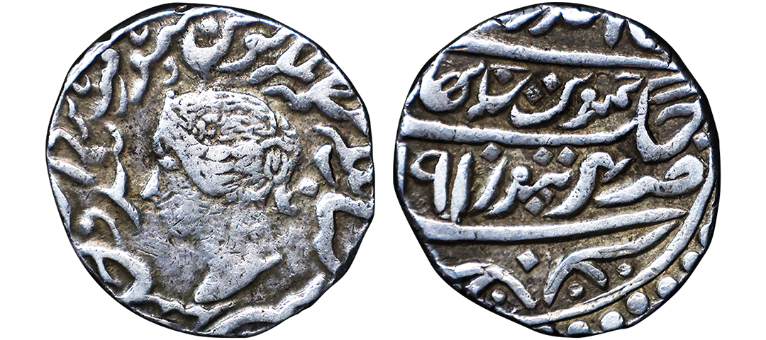 Bharatpur State, INO Shah Alam II (AH 1174-1221, 1759-1806 AD), Silver Rupee, 11.18 gms, Mahendrapur Mint, AH 11xx, RY 15, Obv. sikka zad bar haft kishwar saya-e fazle elah, hami din-e Muhammad Shah Alam Badshah, Rev. sana julus maimant manus Dar Mahendrapur, KM # 56, very fine, very scarce.