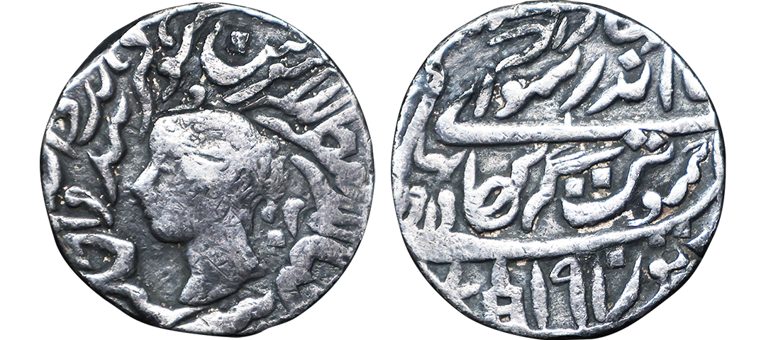 Bharatpur State, INO Shah Alam II (AH 1174-1221, 1759-1806 AD), Silver Rupee, 11.18 gms, Mahendrapur Mint, AH 11xx, RY 15, Obv. sikka zad bar haft kishwar saya-e fazle elah, hami din-e Muhammad Shah Alam Badshah, Rev. sana julus maimant manus Dar Mahendrapur, KM # 56, very fine, very scarce.