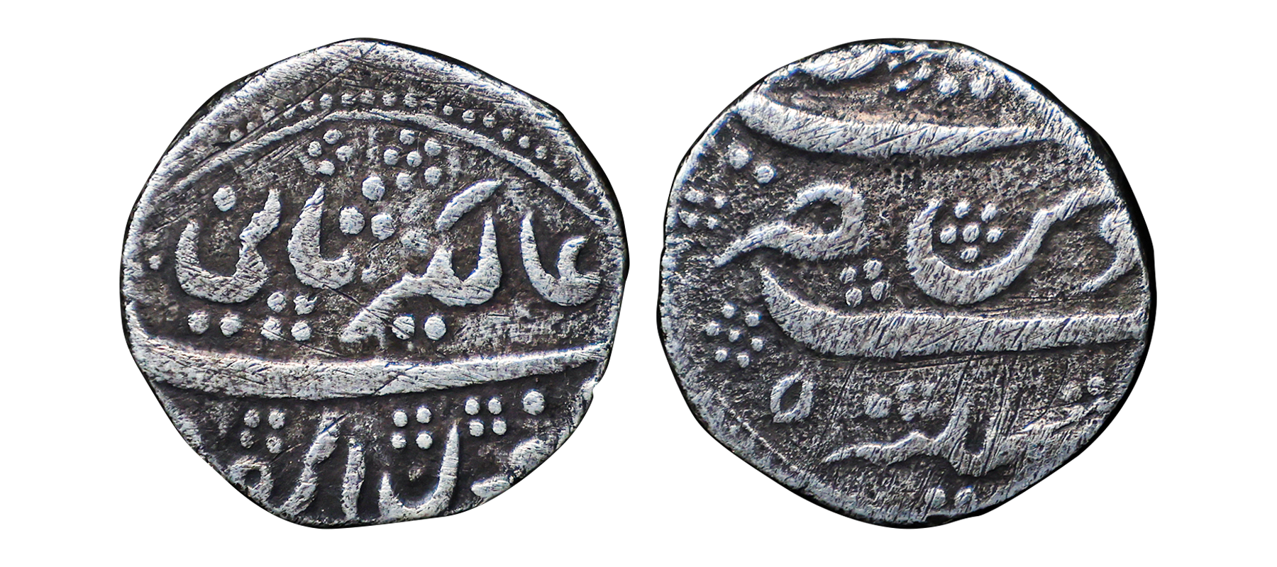 Hyderabad Feudatory, Silver Rupee,10.99g, Koilkonda Mint, in the name of Alamgir II, couplet read as on obv. ba-Fazl-i-Ilahi alamgir thani. Unlisted in KM. Fine+. Rare