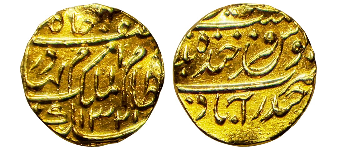 Hyderabad State, Afzal ad-Daula (AH 1273-1285, 1857-1869 AD), in the name of Asaf Jah, Nizam-ul-mulak, Gold ¼, 1/8, 1/16, Asharfi Set of 3, 2.78 gms, 1.40gms, 0.69gms, Farkhanda Bunyad Hyderabad Mint, AH 1282, Obv. Sikka Nizam-ul-mulk Bahadur Asaf Jah, Rev. zarb Farkhanda Bunyad Hyderabad manus maimanat julus, KM Y9, uncirculated, rare.