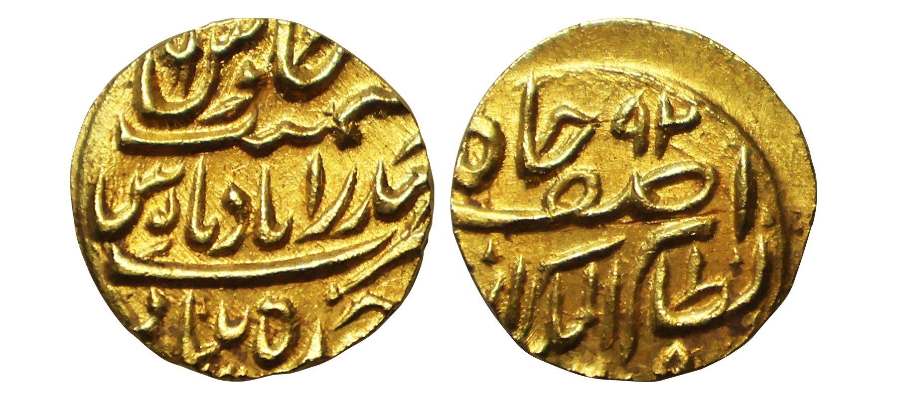 Hyderabad State, Afzal ad-Daula (AH 1273-1285, 1857-1869 AD), in the name of Asaf Jah, Nizam-ul-mulak, Gold ¼, 1/8, 1/16, Asharfi Set of 3, 2.78 gms, 1.40gms, 0.69gms, Farkhanda Bunyad Hyderabad Mint, AH 1282, Obv. Sikka Nizam-ul-mulk Bahadur Asaf Jah, Rev. zarb Farkhanda Bunyad Hyderabad manus maimanat julus, KM Y9, uncirculated, rare.