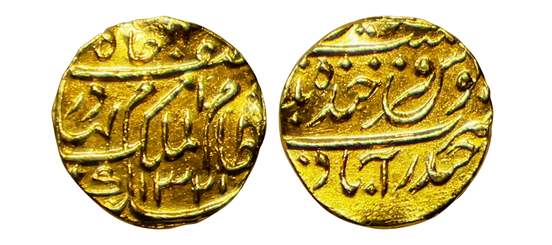Hyderabad State, Afzal ad-Daula (AH 1273-1285, 1857-1869 AD), in the name of Asaf Jah, Nizam-ul-mulak, Gold ¼, 1/8, 1/16, Asharfi Set of 3, 2.78 gms, 1.40gms, 0.69gms, Farkhanda Bunyad Hyderabad Mint, AH 1282, Obv. Sikka Nizam-ul-mulk Bahadur Asaf Jah, Rev. zarb Farkhanda Bunyad Hyderabad manus maimanat julus, KM Y9, uncirculated, rare.