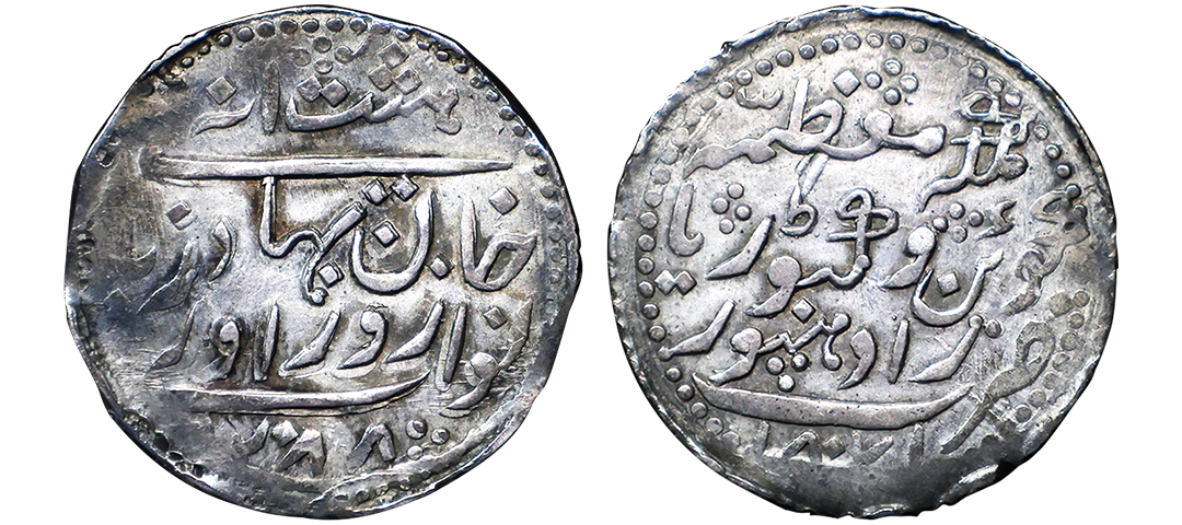 Patiala, Bhupinder Singh( VS 1958-1994, 1900-1937 AD), Gold 1/3 Mohur, 3.61 gms, VS(19)58, in the name of Ahmad Shah Durrani, Katar on reverse with date (19)58, KM #15, extremely fine, very rare.
