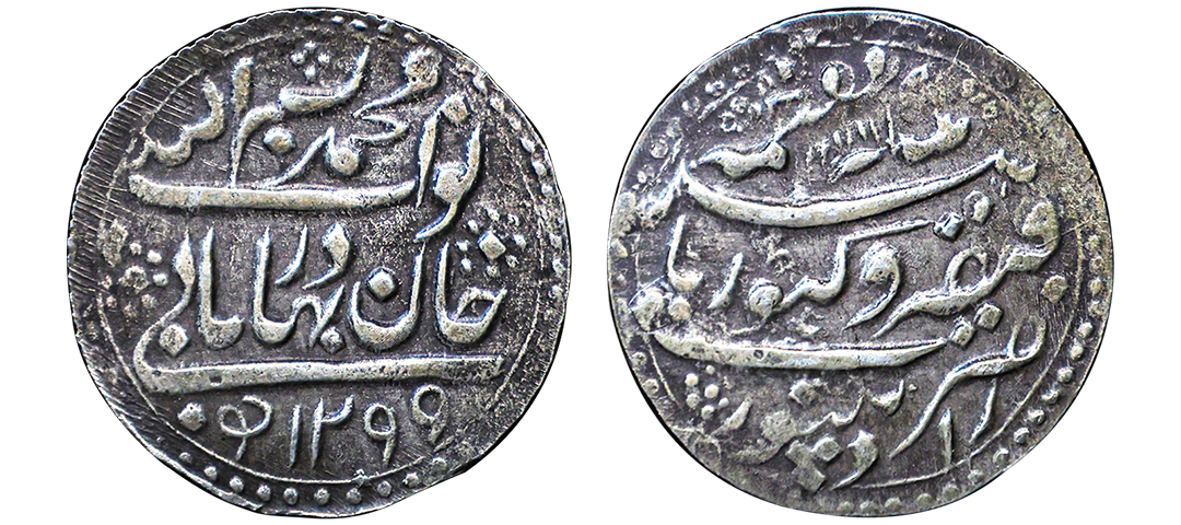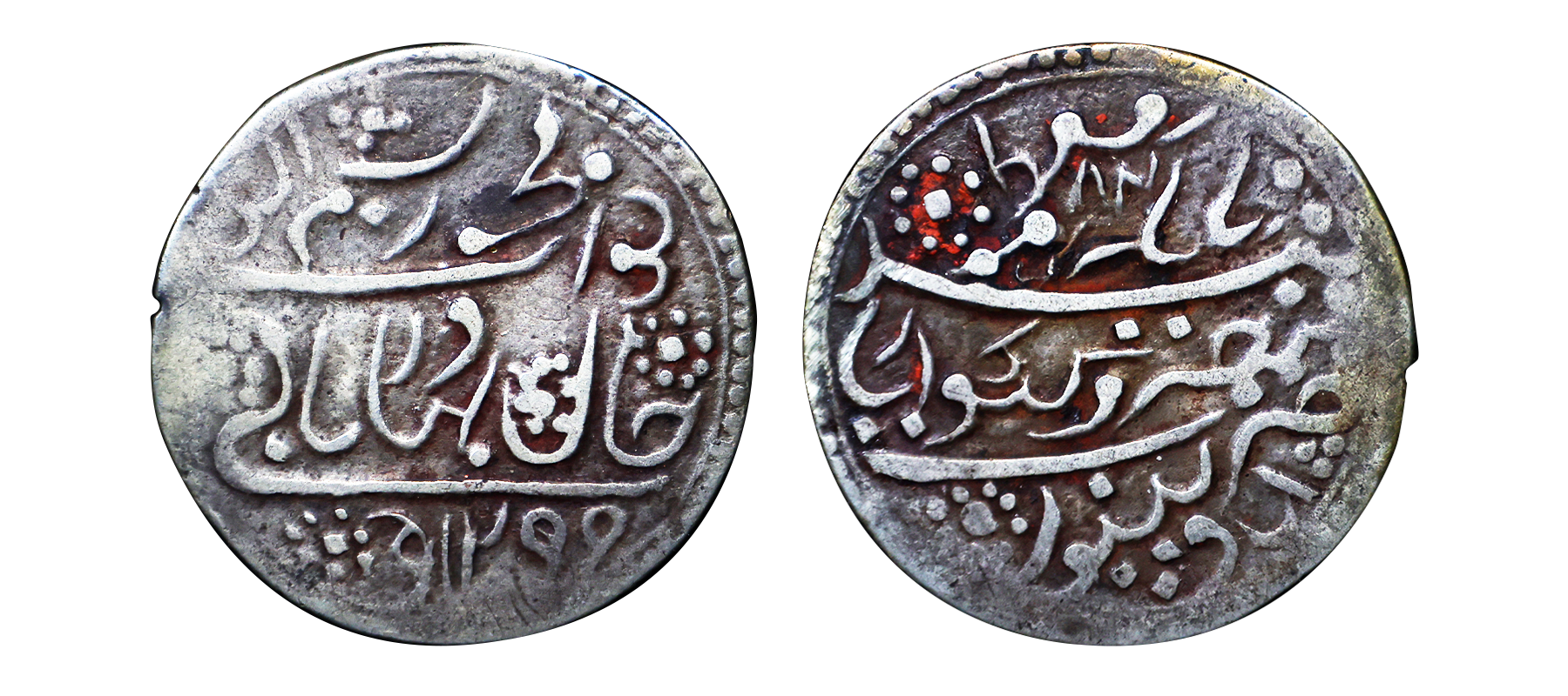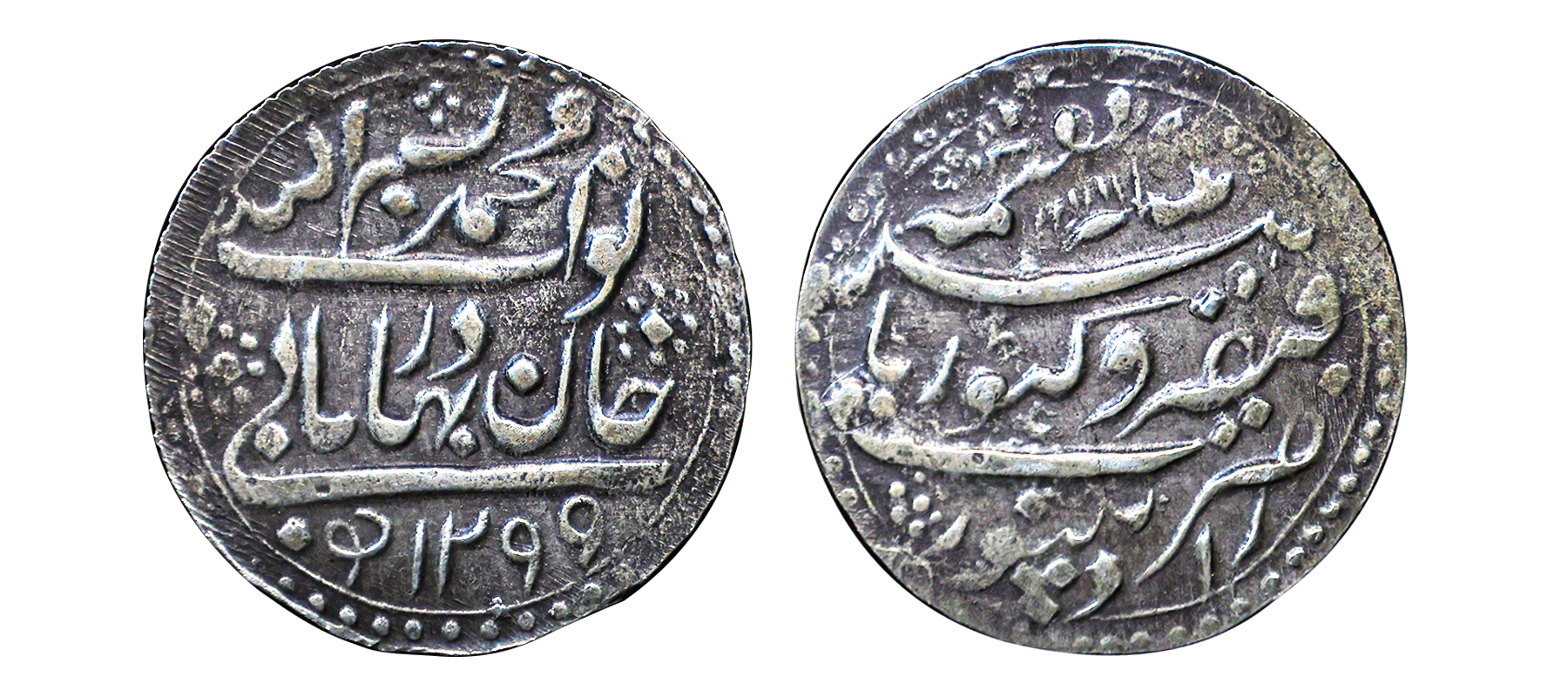Radhanpur State, Zorawar Khan (AH 1241-1291/1825-1874 AD), Silver 8 Annas, 5.85g, Radhanpur Mint, AH 1288, AD 1871, with the name of Queen Victoria. (KM # 10). Very Fine.