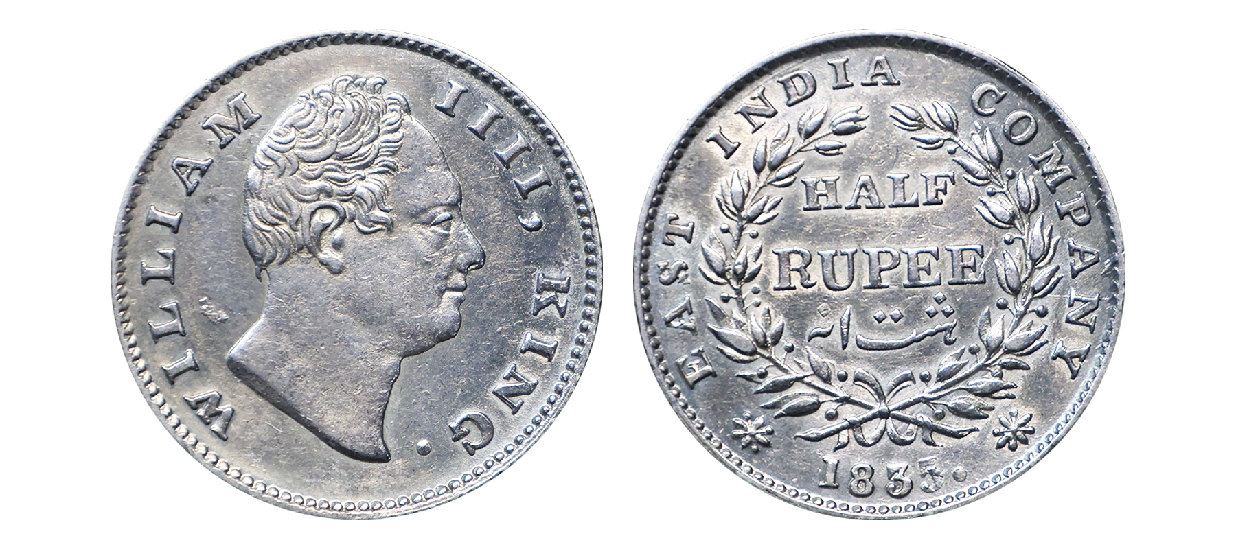 Madras Presidency, Silver ½ Pagoda, 21.12 gms, 1808 AD, Obv. gopuram of a temple with 9 stars either side, a buckled garter encircling the central design, the value in large English lettering ‘HALF . PAGODA’, Rev. Vishnu holding a sword in his left hand and rising from a lotus flower. surrounded by three dotted circles, a ribbon the ends separated by star, the value around in Tamil legend "Arai pu vara kun" Telugu legend "Ara pu vara hun" around deity Vishnu, KM #353, very fine+, very rare, from the collection of Mr. I.K Kejriwal.