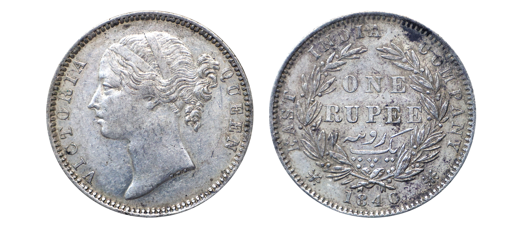 Victoria Queen, Silver Rupee, 1840, Continuous Legend, Calcutta Mint, 19 berries, (L-10 + R-9), Graded by NGC AU58.
