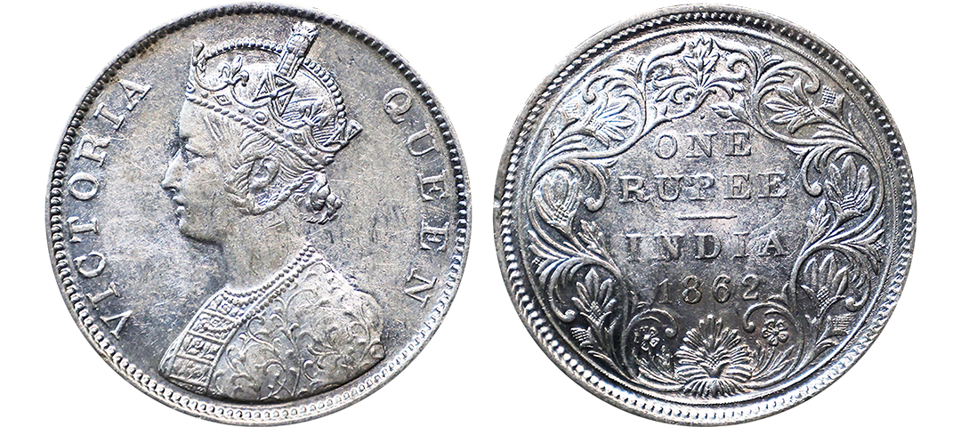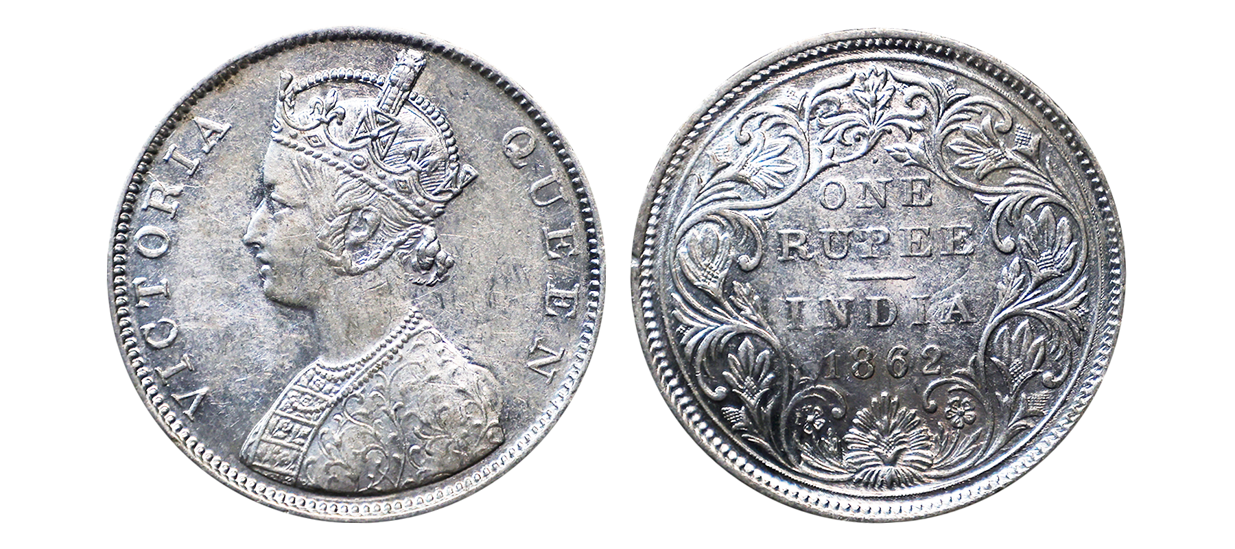 Victoria Queen, Silver Rupee, 1840, Divided legends type, excellent quality, Graded by NGC MS62, Very rare.