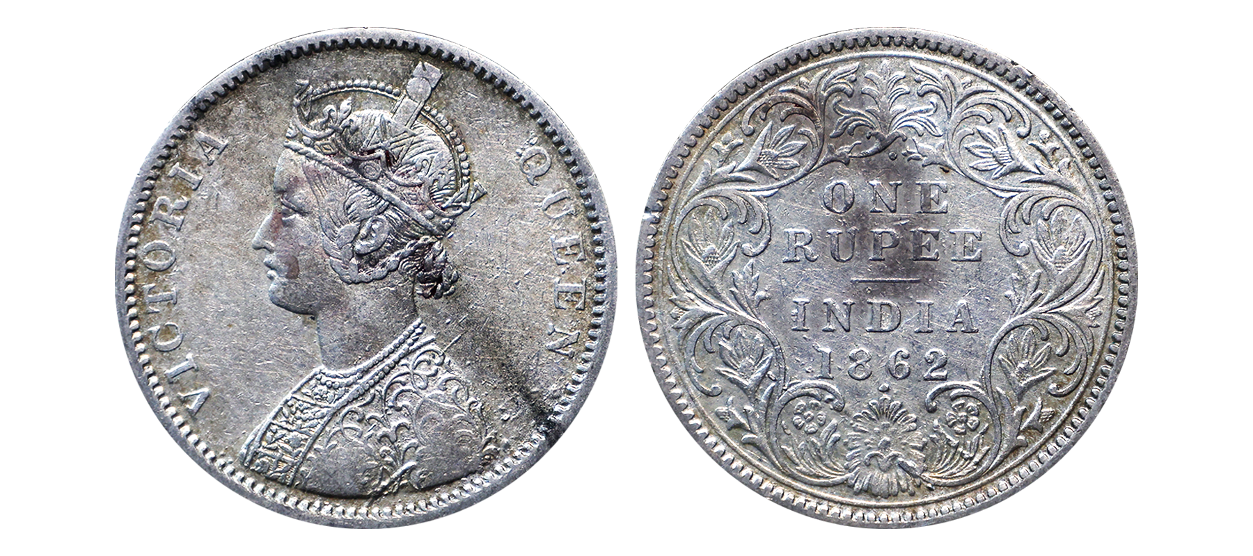 Victoria Queen, Silver Rupee, 1862, 0/4 dots, Bombay mint, superb almond and peach toning, superb quality, Graded by NGC MS61.