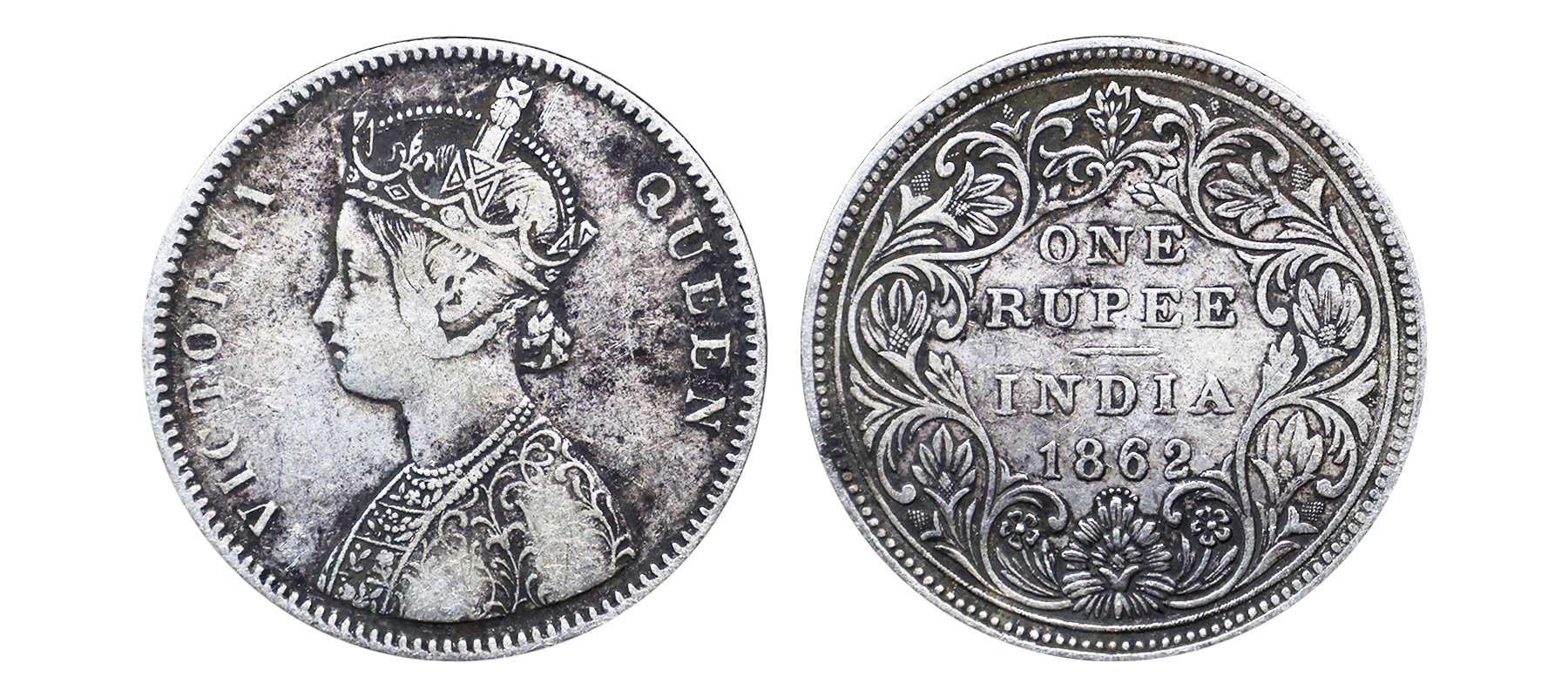 Victoria Queen, Silver Rupee, 1862, A/II, 0/5 dots, 1862 rupee with dots are extremely difficult to get ins63 onwards, superb choice quality with excellent surfaces and strike,Graded By NGC MS63, Extremely Rare.