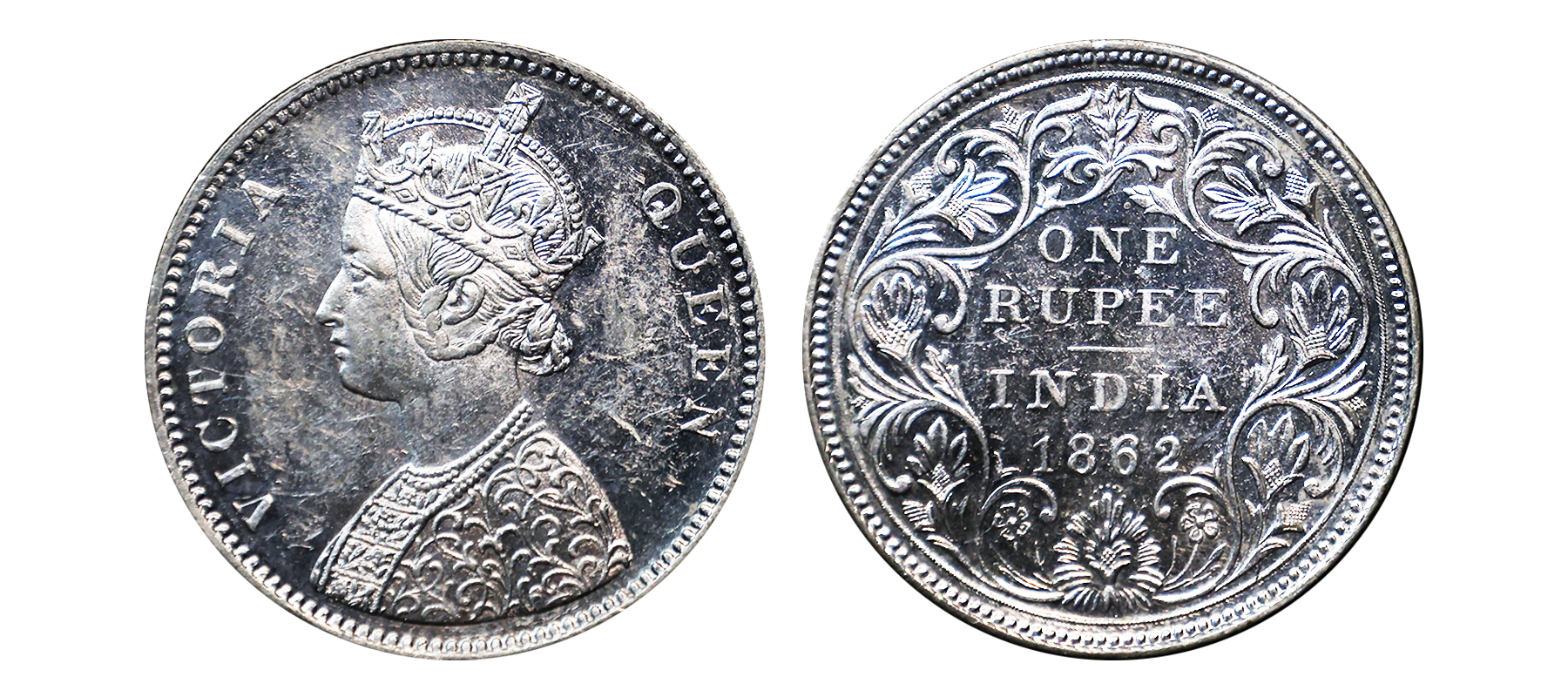 Victoria Queen, Silver Rupee, 1862, A/II, 0/5 dots, all dots in a Complete straight line, Extremely rare variety.