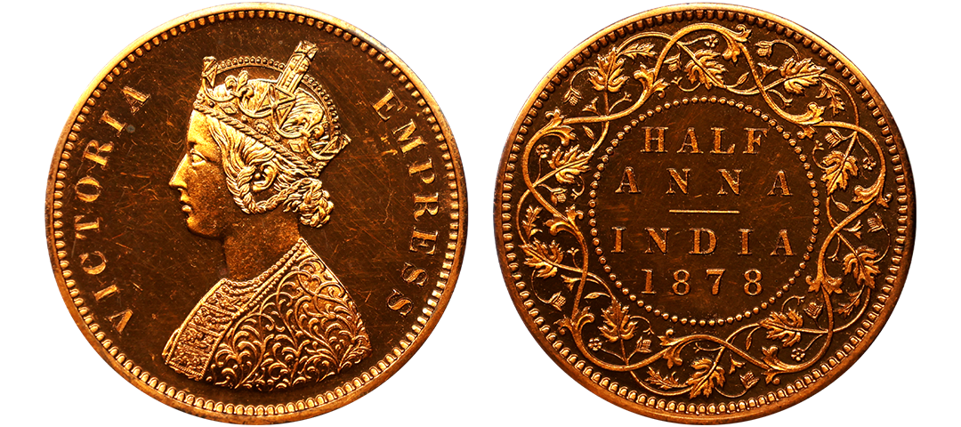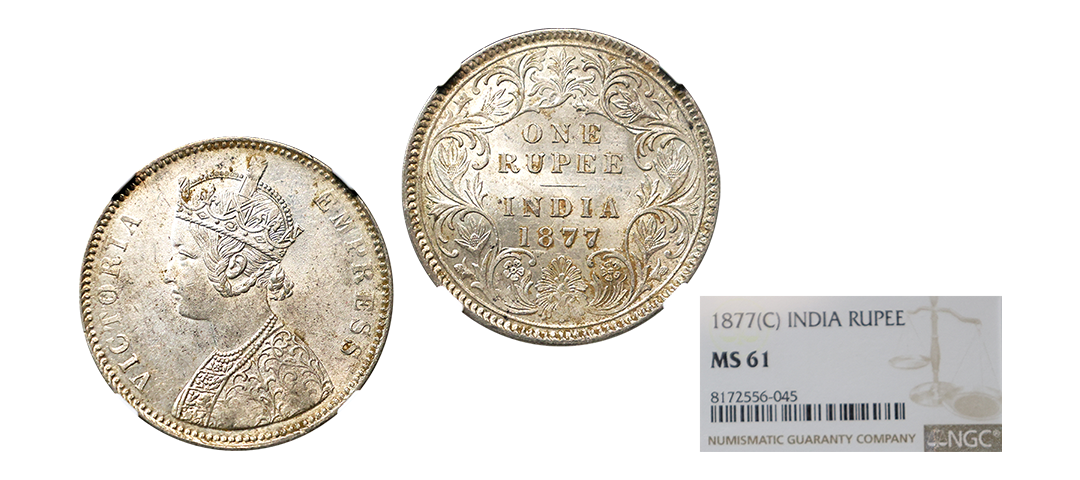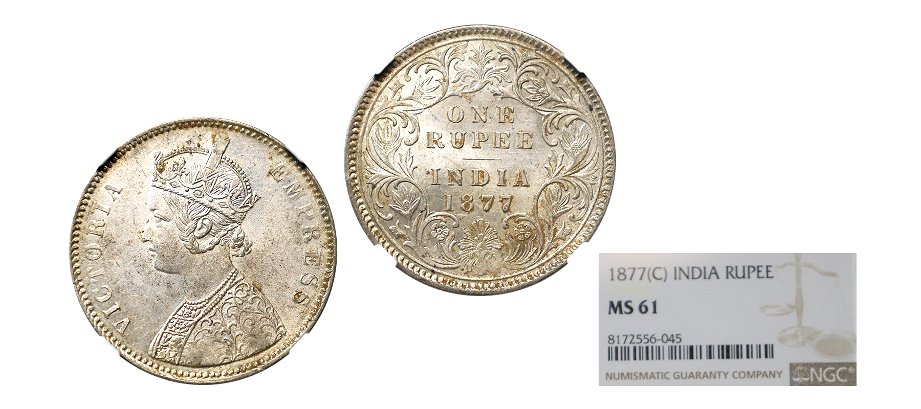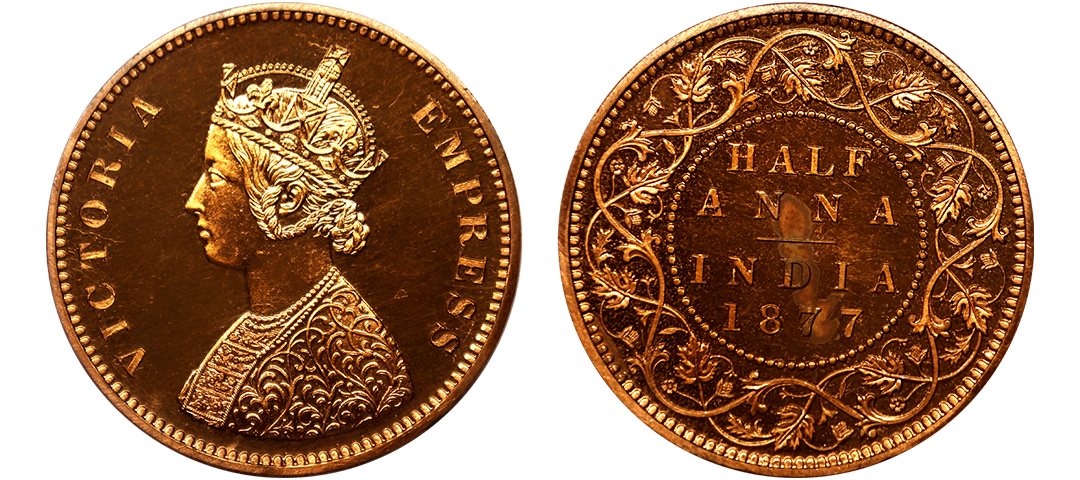 Victoria Empress, gold mohur, 1891, Calcutta mint, two flowers in bottom panel and 'V' in Jabot, S&W 6.18, PR 24. Professionally Repaired/Restored, Very Fine+, Very rare.