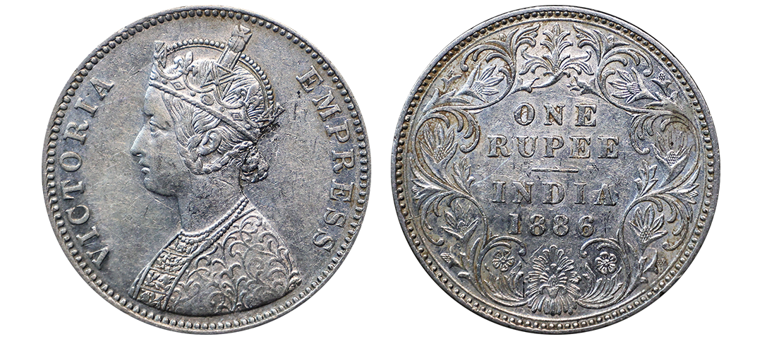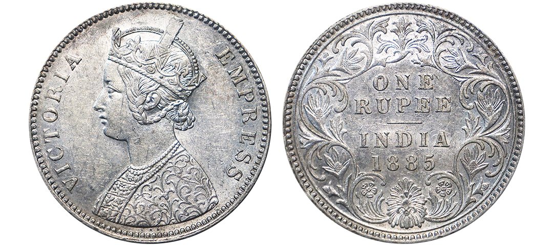 Victoria Empress, Silver Rupee, 1885, C4/I(i), b raised, C4 is a new Obverse Recently Discovered. Extremely Rare.