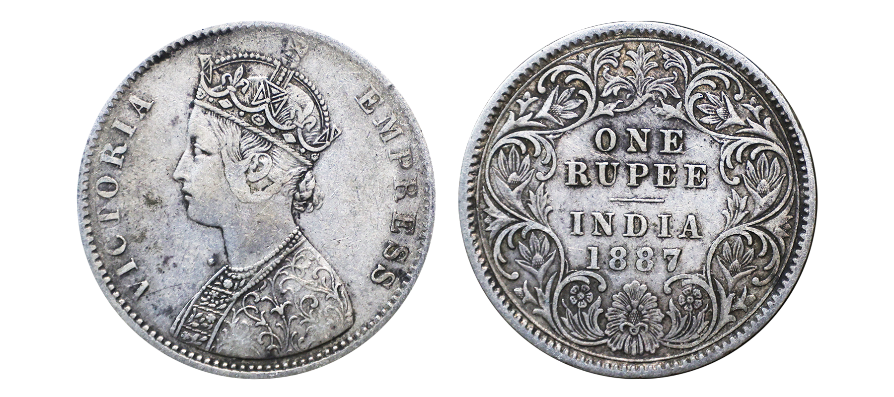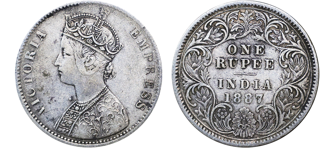 Victoria Empress, Silver Rupee, 1887, A4/I, c incuse, dot near Victoria's neck, Unlisted, Very Rare.