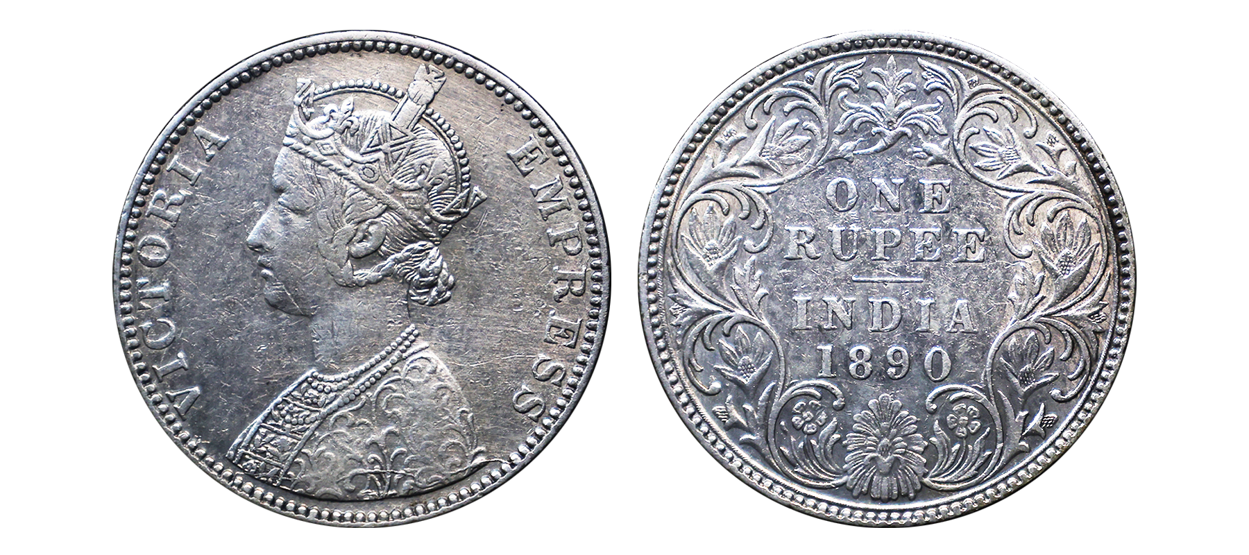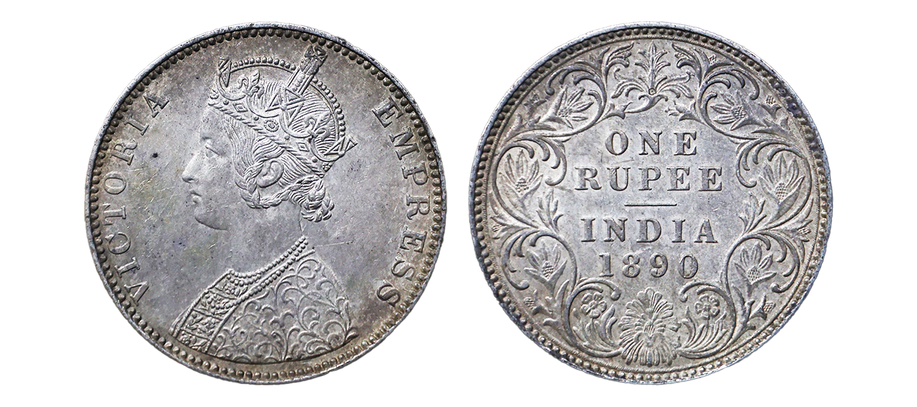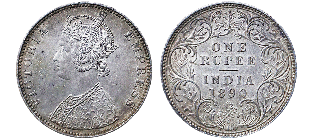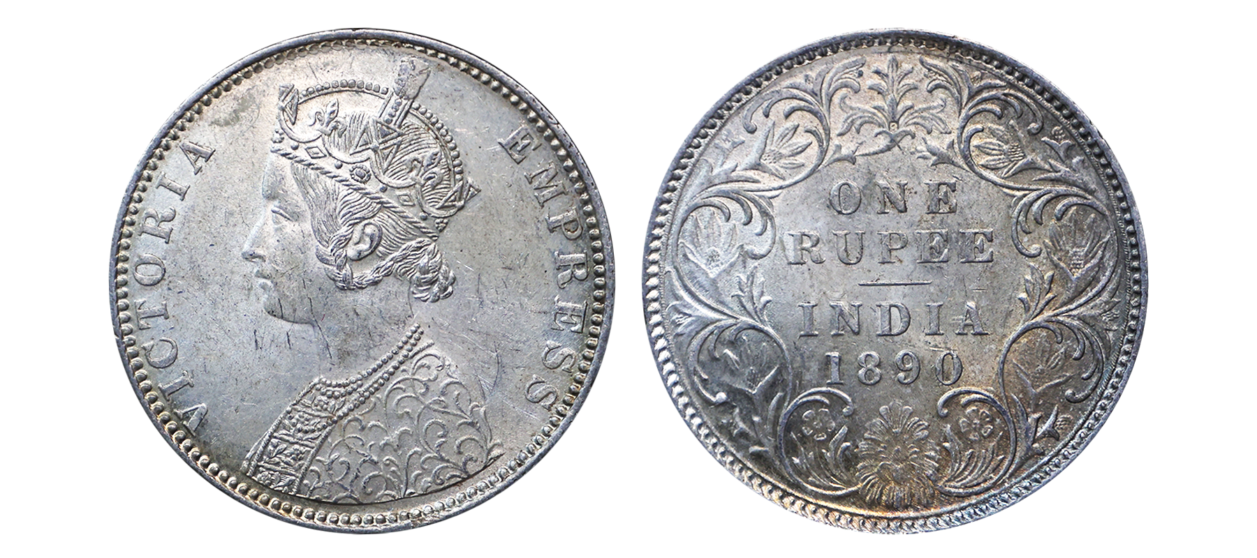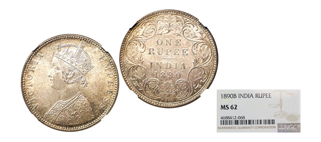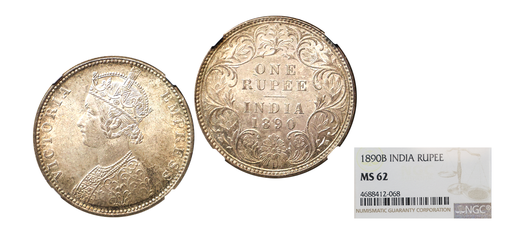 Victoria Empress, Silver Rupee, 1890, Bombay Mint, Bust A/Rev: I, B incused, Graded by NGC MS62.