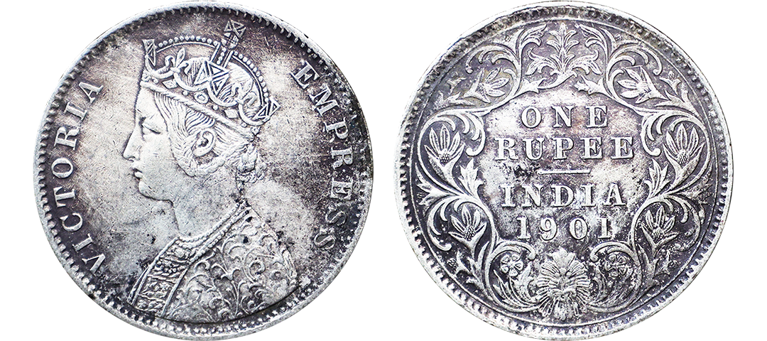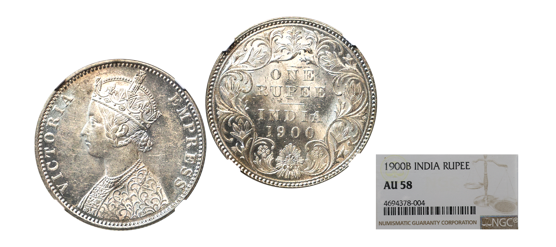 Victoria Empress, Silver Rupee, 1898/4 overdate , the proof dies of 1894 was altered to make it 1898 as 1894 doesn't comes in currency issue, Extremely rare overdate.