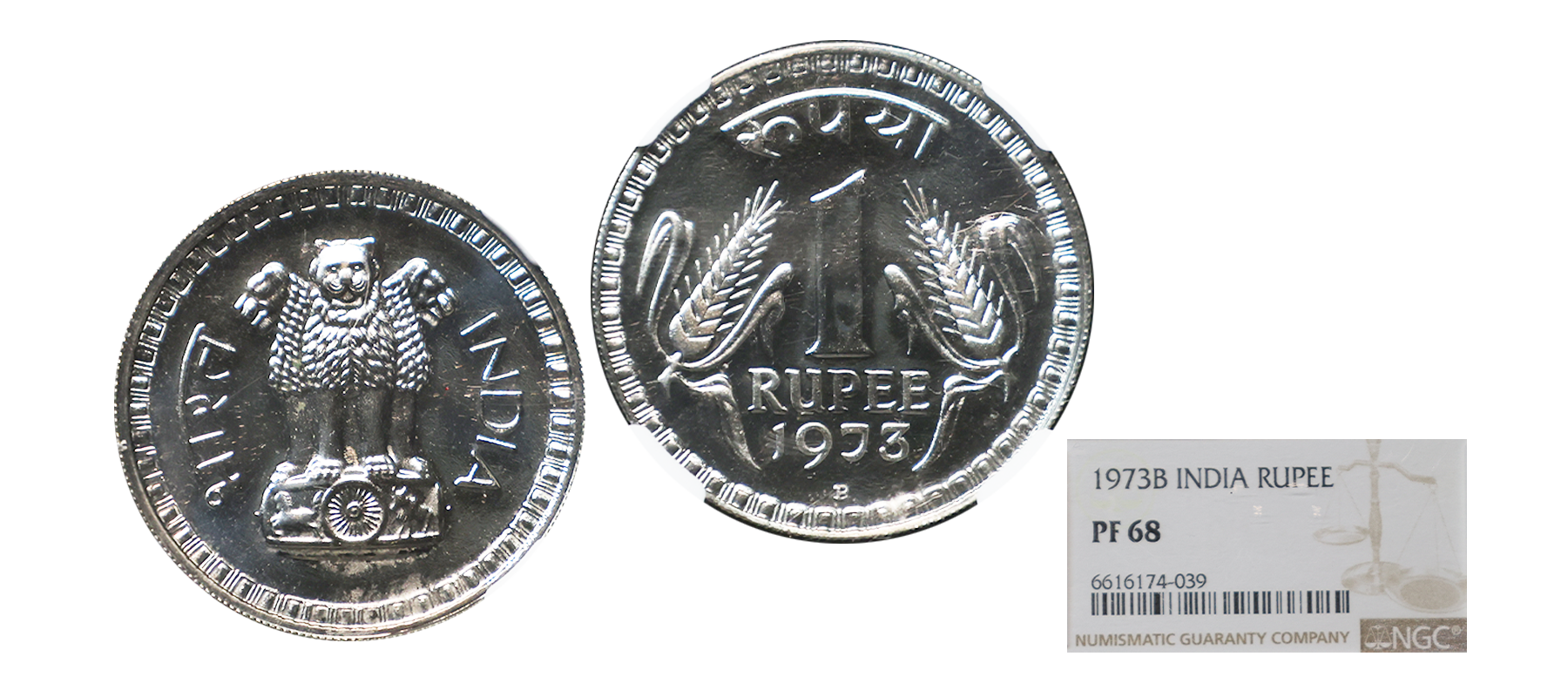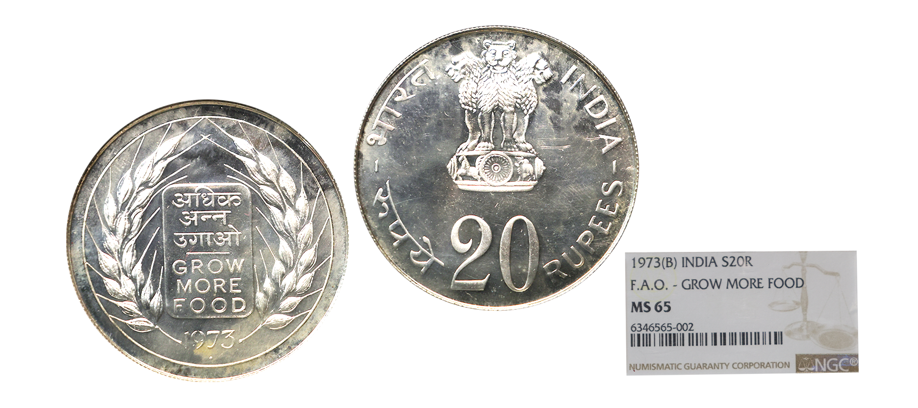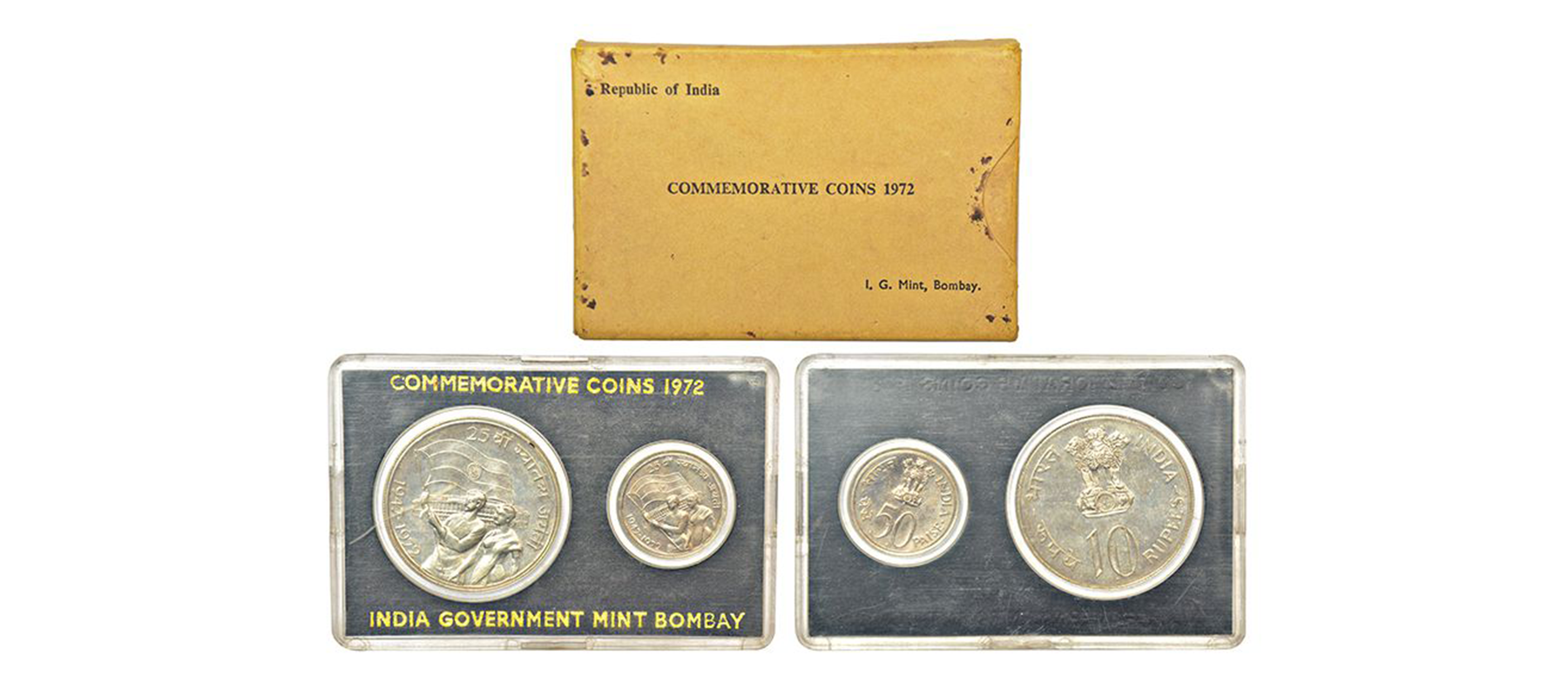 1971, Food for All, VIP Proof set of 9 coins, 10 rupees, 1 rupee, 50 paise, 20 paise, 10 paise, 5 paise, 3 paise, 2 paise and 1 paisa, Bombay mint, RB 27, in original mint packing