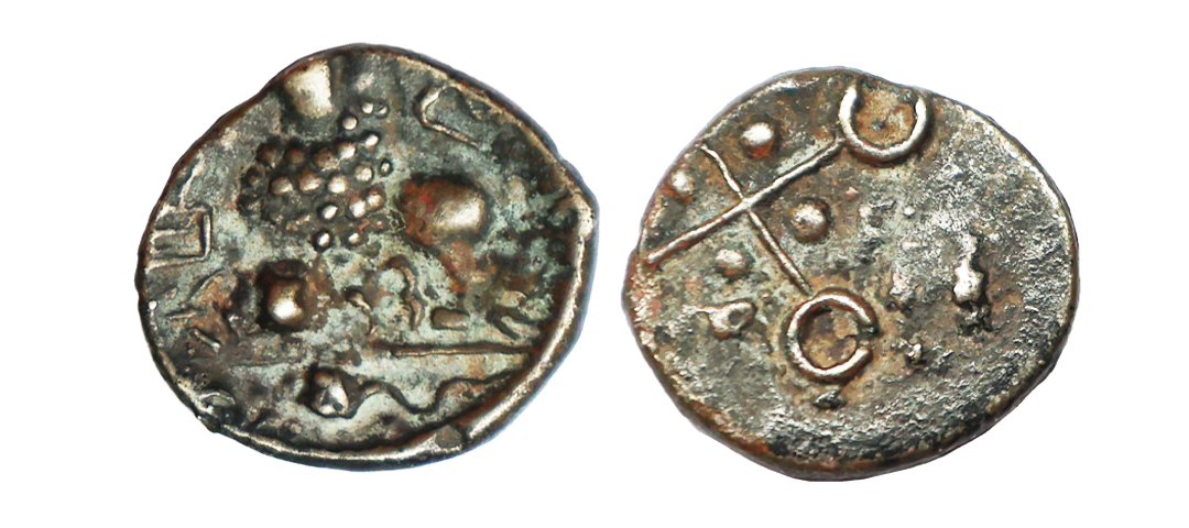 Ancient, Satavahanas, Sri Satakarni (100 BC), Copper, 1.50 gms, Junnar-Lion type, Obv. Lion standing left in front of a Yupa in railing with compartments, three arched hill below and around traces of Brahmi legend, Rev. Four orb ujjaini symbol, about very fine, very scarce