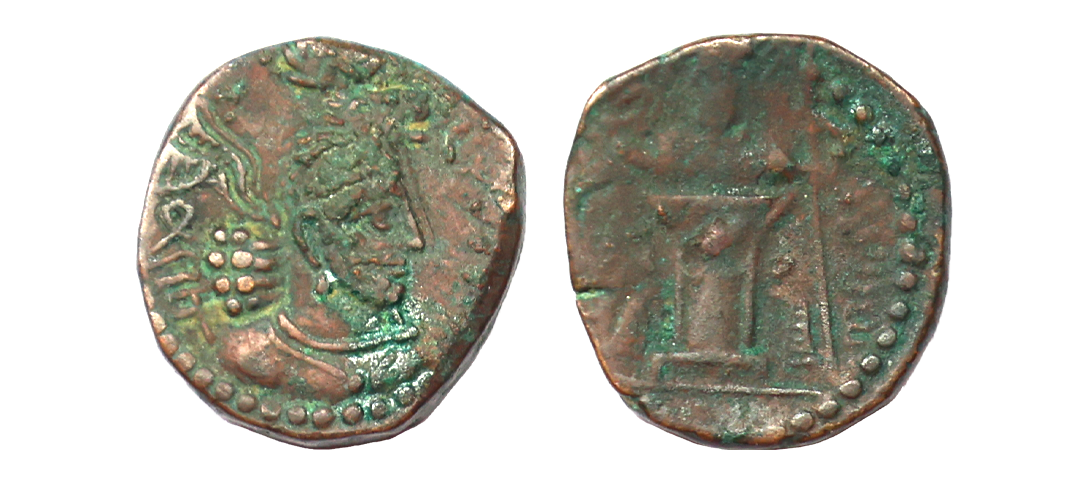 Kushano-Sassanians, Hormizd Kushanshah (271-356 CE), Copper Unit, 2.15 gms, Obv. Diademed bust of king to right, Rev. a half-length figure of Ahura Mazda holding a trident and wreath, arising from a fire-altar, ACW # 1280-83, about very fine, very scarce.