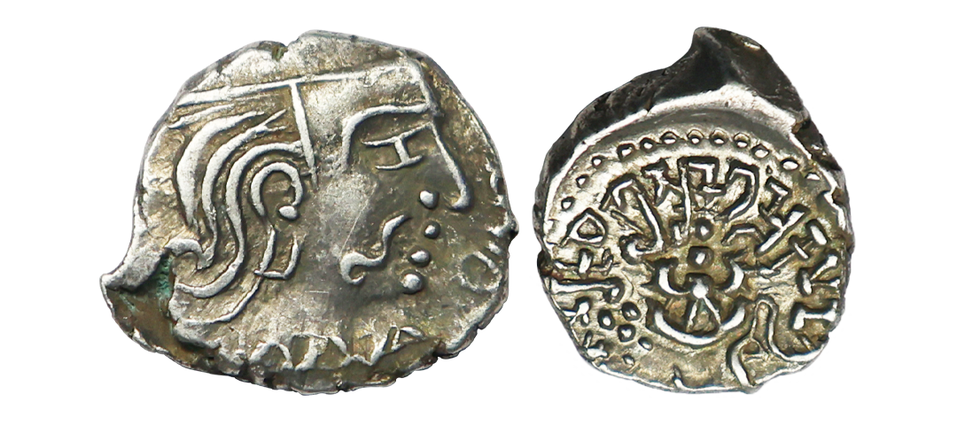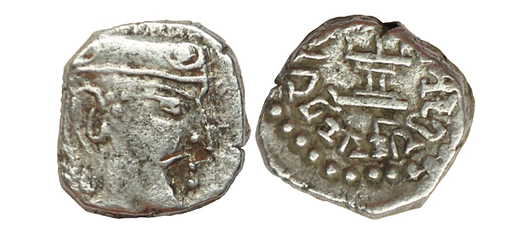 Gupta Empire, Skandagupta (455-480 AD), Silver Drachm, 1.63 gm, Fire Altar type, Obv. side profile of the king facing left, Rev. a fire altar in the center, partial Brahmi legend ‘Paramabhgavata Sri Skandagupta Kramadityah’ around, a dotted border around the field, TOTGE Fire Altar type, Class II, about very fine, very scarce.