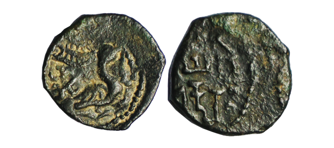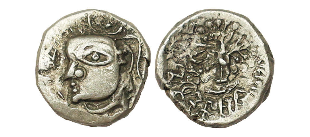 Kidarite Huna Kings of Kashmir, Sri Meghamah (500-600 AD), Base Gold Dinar, 7.39 gms, Obv. Standing figure of Shiva, nimbate, in tribhanga pose making mudra by his right hand, holding trident with banners attached in left, wearing dhoti from waist below and an uttariya on shoulder, In background a lioness or a tiger walking left, looking to him with head turned back, brahmi legends on left upper field ‘MeGhaVaNa’, Rev. Goddess Lakshmi, nimbate, seated in full frontal cross-legged posture wearing flowing dress, uttariya, and jewellery; a lotus in her left hand and a flower (jewel) in her right hand. To her left, a conch-shell (Shankha) on a floral pedestal, and a vase (Kumbha) resting on the top of the lotus in her left hand. Brahmi legend Jaya below the lotus in her hand, TOTGE #18.3.2, very fine, less than 10 coins known, extremely rare. Note: The dies were carved by expert mint masters, most probably on an important occasion to commemorate an event. According to the Rajatarangini, the well-known historical chronicle of Kashmir written by Kalhana in the 12th century AD, Sri Meghavahana was the grandson of Yudhishthira, the son of Bhupaditya, and a ruler of Kashmir. He belonged to a family of Gonaddha. Some scholars believe that Meghavahana was a predecessor of Pravarasena, and some consider the other way around. The Rajatarangini mentions that Meghavahana was followed by Shreshthasena, who was succeeded by Hiranya. When Hiranya died, a usurper named Matrigupta assumed the throne of Kashmir with the help of Vikramaditya of Ujjaini. Pravarasena, the nephew of Hiranya, marched to Kashmir and defeated Matrigupta. Later on, Pravarasena became a great king who founded a city. The history of this period is not very clear in the chronicle, but this coin remains the sole testimony to the historical existence of a king named Meghavahana.