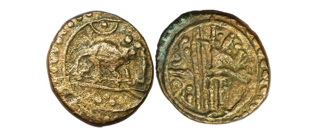 Medieval, Kingdom of Travancore (16th Century AD), Copper 4 Cash, 2.51 gms, Obv. Lord Vishnu reclining on ananta, Rev. Elephant to right, MCSI-II #1193-1200, very fine, rare.