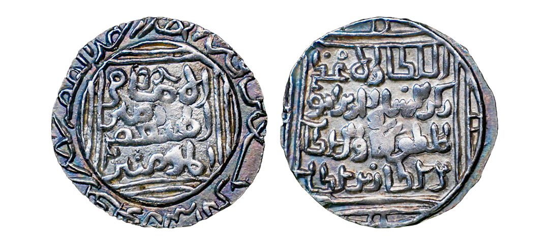 Bengal Sultanate, coins Struck INO Jalalat al-din Radiyya / Razia Sultan (AH 634-637, 1236-1240 AD), Silver Tanka, 10.59 gms, Lakhnauti Mint, Obv. al-sultan al-a'zam Jalalat ud-dunya wa'l din malikah ibnt Iltutmish al-sultan nusra amir al mum'inin, Rev. fi ahd al imam mustansir amir al mominin with mint name Lakhnauti in margin, G&G # B57, very fine+, very rare.