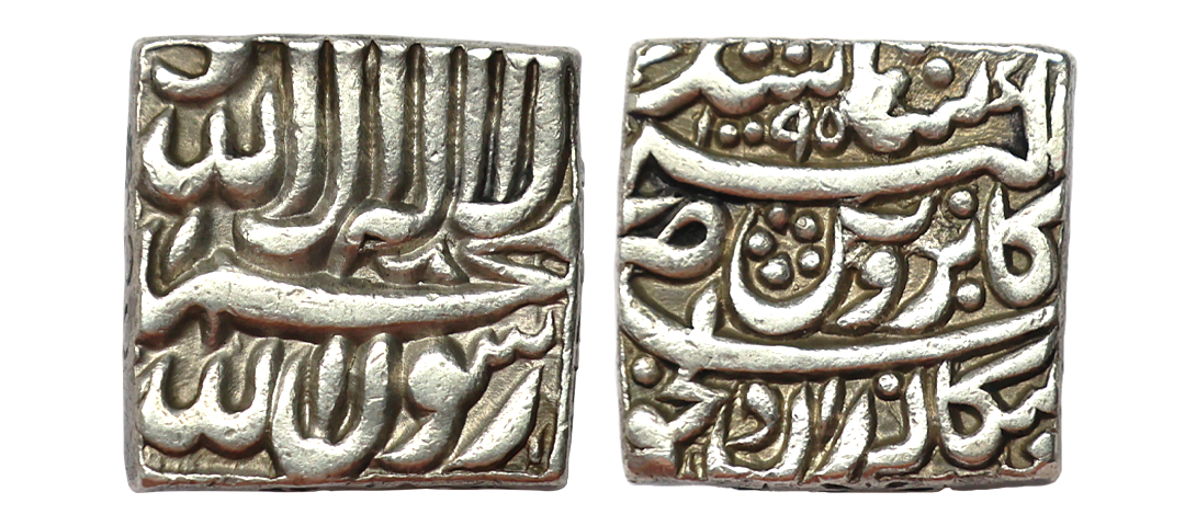 Mughal, Akbar (AH 963-1014, 1556-1605 AD), Silver Rupee, 11.02 gms, Bang Mint (By type), AH 1006, Obv. Kalima Shahada with caliph’s name around, Rev. khald allah mulkahu on top, Jalal al din Muhammad Akbar Badshah Ghazi 1006, mint name below, unlisted type, very fine, scarce.