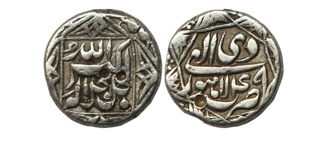 Mughal, Akbar (AH 963-1014, 1556-1605 AD), Silver ½ Rupee, 5.65 gms, Lahore Mint, Ilahi Month Di, Year 49, ornamental type, KM #67.1, very fine, rare.