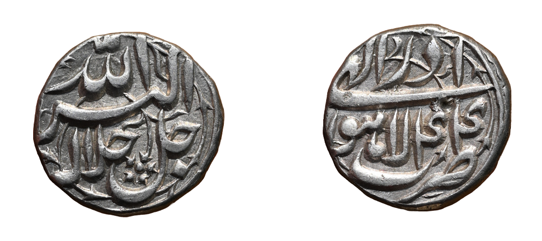 Mughal, Akbar (AH 963-1014, 1556-1605 AD), Silver 1/2 Rupee, Lahore Mint, Ilahi Month Azar, RY 44, Obv. Jal-e-Jalal AKbar Allah, Rev. zarb Lahore 44 Azar Ilahi, KM # 66.3, extremey fine, very scarce.