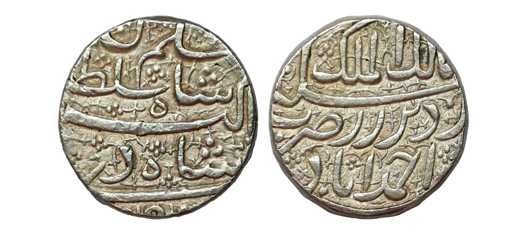 Mughal, Jahangir (AH 1014-1037, 1605-1627 AD), Silver Zodiac Rupee, 11.41 gms, Ahmadabad Mint, AH 1027, RY 13, Zodiac Sign ‘Cancer’ corresponding to Ilahi month of Tir, ‘Inayat-e-ilah’ Couplet, Obv. Cancer the crab, radiate sun behind RY below Sanah 13, Rev. Sikka zad dar Ahmadabad az Inayat-e-ilah Shah Nur Al din Jahangir ibn-e Akbar Badshah, date below 1027, Unlisted in KM, Rarest of the rare Zodiac signs with ‘Inayat-e-ilah’ Couplet, only Handful specimens known, extremely fine+, exceedingly rare. Meaning of Couplet: Struck money at Ahmadabad by the blessing of God, Shah Nooruddin Jahangir son of Akbar Badshah. Note: Jahangir 'Inayat-e-ilah' couplet coins featuring the ‘Cancer’ zodiac sign are among the rarest of all Jahangir zodiac rupees. They are notably absent from many major Mughal numismatic collections, which further enhances their desirability. The specific couplet, significantly rarer than those bearing the more common 'Zad Zewar' couplet. The offered coin is in immaculate condition and represents a highly sought-after specimen for discerning collectors of top-tier Mughal coinage.