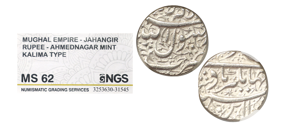 Mughal, Jahangir (AH 1014-1037, 1605-1627 AD), Silver Rupee, 11.34 gms, Akbarnagar Mint, AH 1022, Ilahi month Aban, Obv. Nur al din Jahangir shah Akbar Shah, Rev.zarb Akbarnagar 1022 Aban Ilahi, decorative borders on both sides, KM # 145.4, very fine, rare