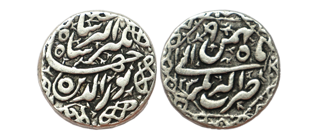 Mughal, Jahangir, Silver Rupee, Ahmedabad Mint, Muzaiyan couplet, aban month, AH 1025, The coin features excellent ornamentation with superb deep bold strike showing almost no wear and tear, one of the finest specimens of the type, Graded by NGS as MS 64,extremely rare.