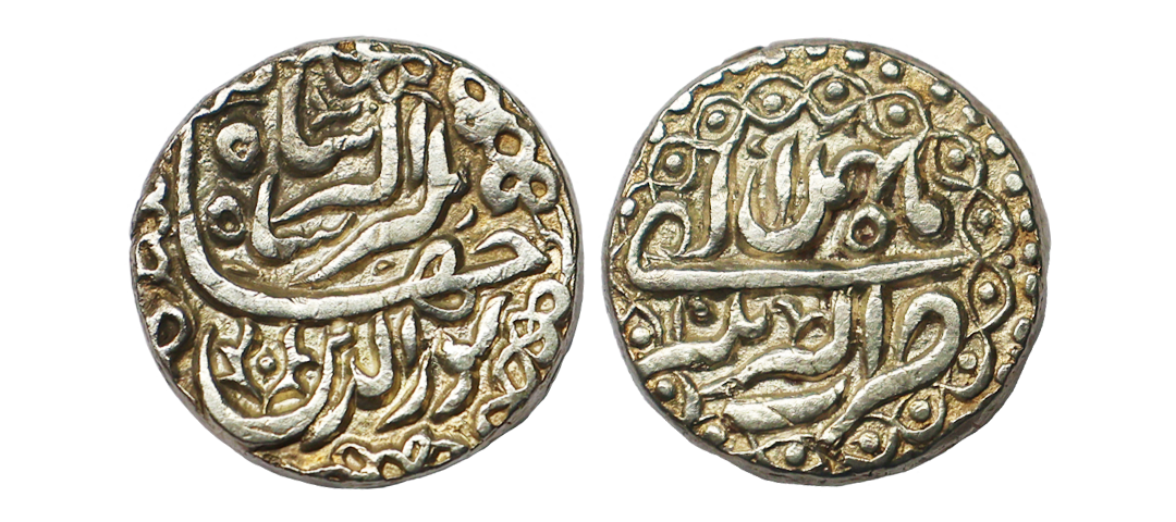 Mughal, Jahangir, Silver Rupee, Ahmednagar mint, Excellent ornamentation on the specimen with tinge of luster on it, very attractive, Graded by NGS as MS 62,very rare.