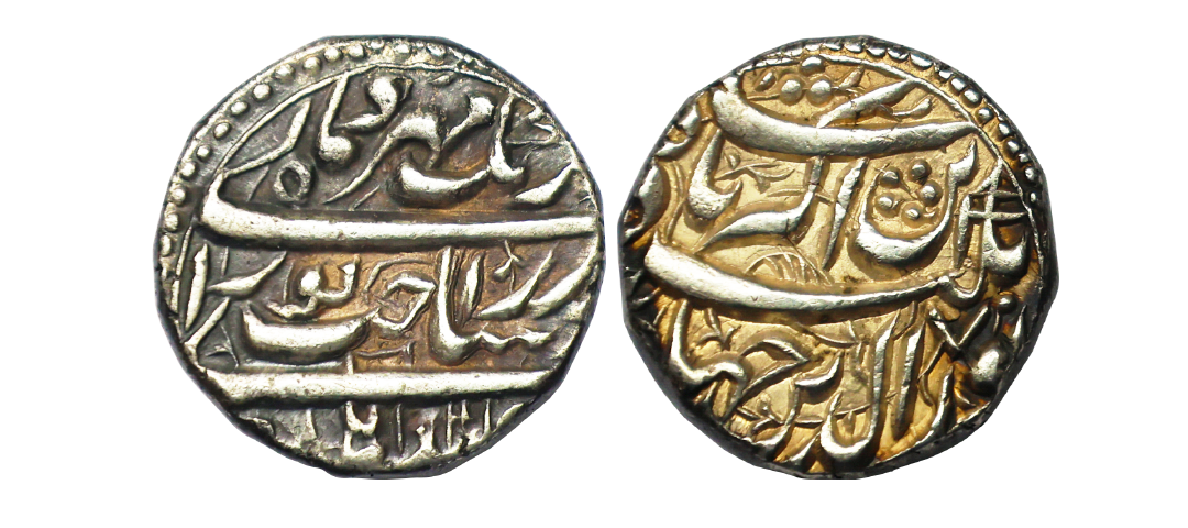 Mughal, Jahangir (AH 1014-1037, 1605-1627 AD), Silver Jahangiri Rupee, 13.64 gms, Qandhar Mint, AH 1021, RY 7, ‘Sakht Noorani’ Couplet, Obv. ruye zar ra Sakht Noorani ba rang e mehr-o-mah, Rev. Shah Nooruddin Jahangir ibn Akbar Badshah, KM #155.5, extremely High relief, decorative field, almost uncirculated, very rare.
