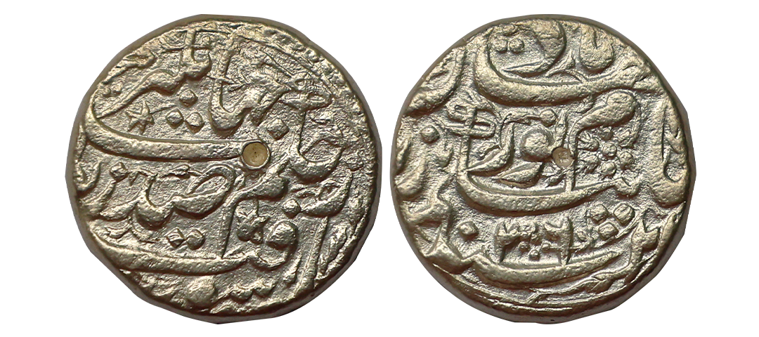 Mughal, Nur Jahan (AH 1033-1037, AD 1623-1627), Silver Rupee, 11.36 gms, AH 1037, RY 22, Allahabad Mint, ‘Zad Zewar’ Couplet, Obv. Ba Hukm-e-Shah Jahangir Yaft Sad Zewar 1037 & RY 22, Rev. ba Naam-e-Noor Jahan Badhshah Begam Zar zarb Allahabad, Finest Known till Date, completely struck on both sides with clear decorative motifs, extremely fine, exceedingly rare.